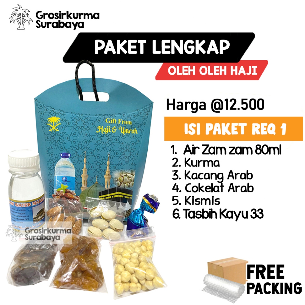 NEW PAKET Oleh Oleh Haji Umroh Souvenir Tas Jinjing Air Zam 80ml Kurma Kismis Kacang Cokelat Arab