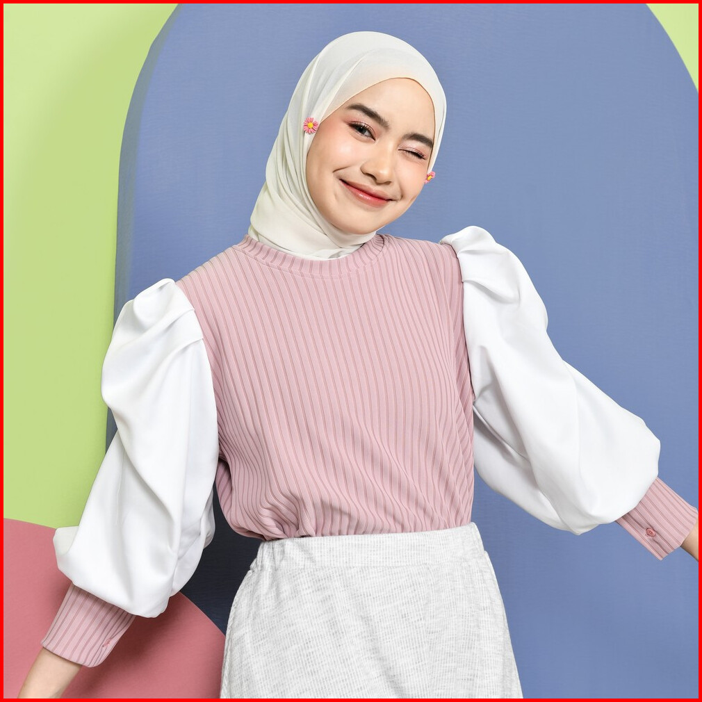 Blouse Knit Puff Mix Satin Kemeja Lengan Balon Blouse Korean Style Blouse Viral 2024