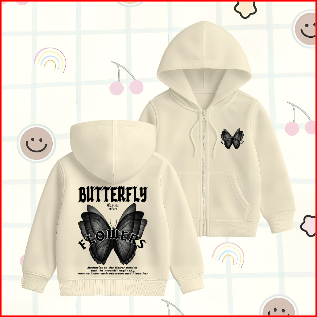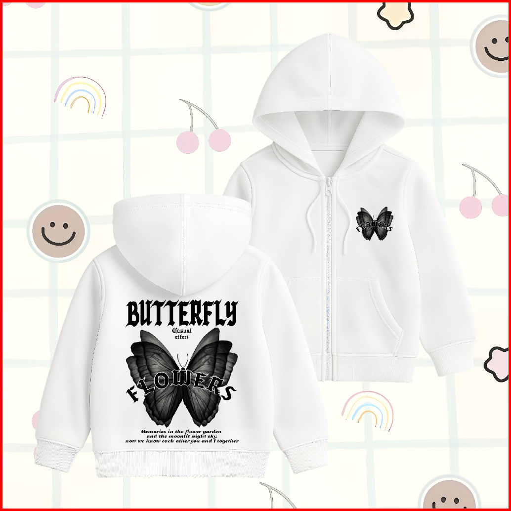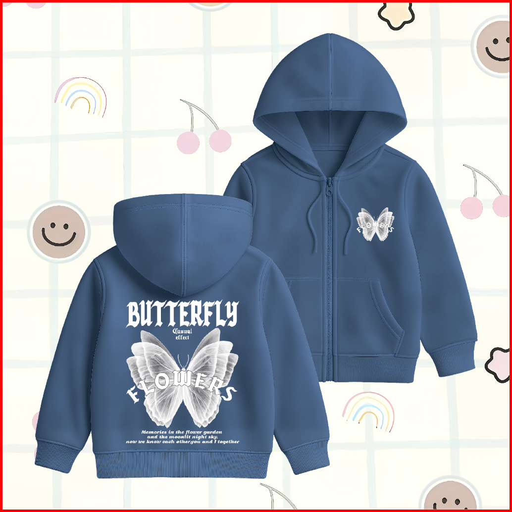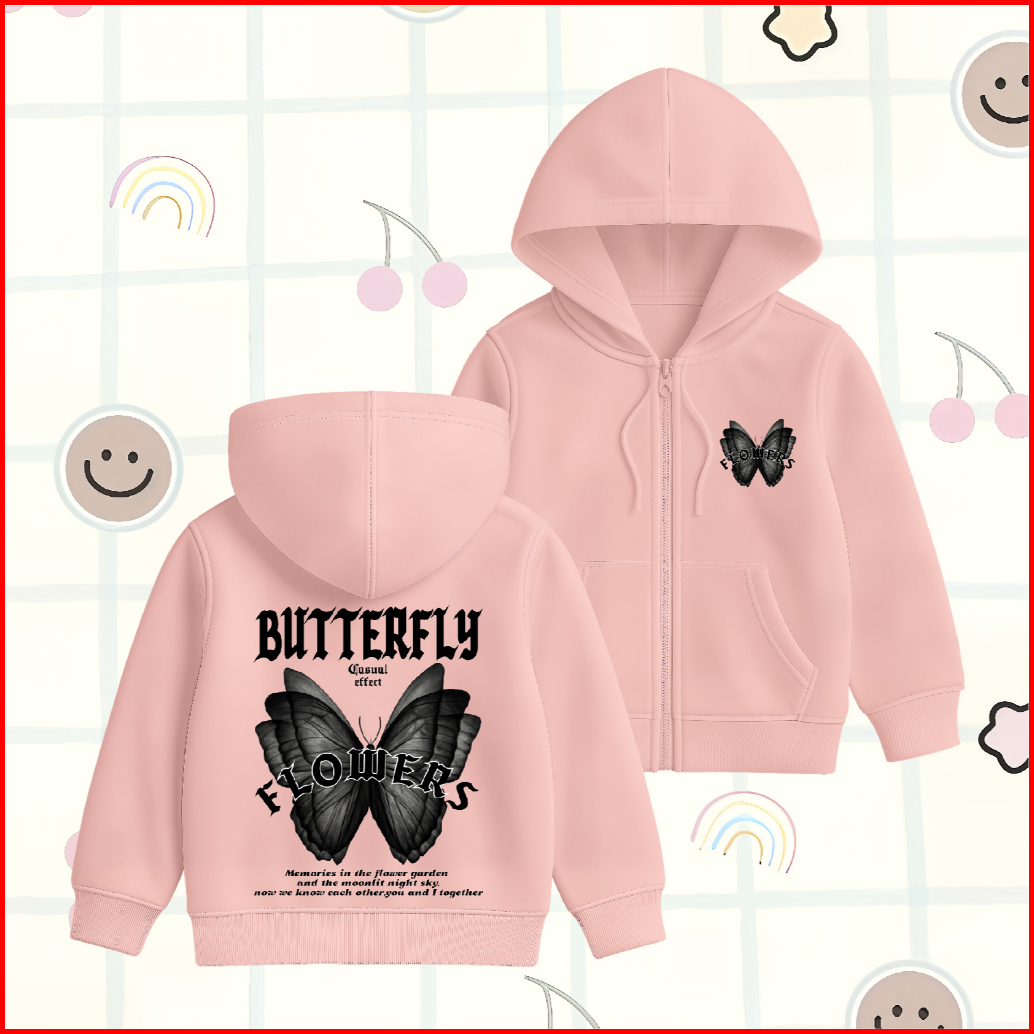 Wgud S Kids Jacket Hoodie Zipper Anak Butterfly Moonlight Umur 4-15 Tahun Laki-laki Perempuan