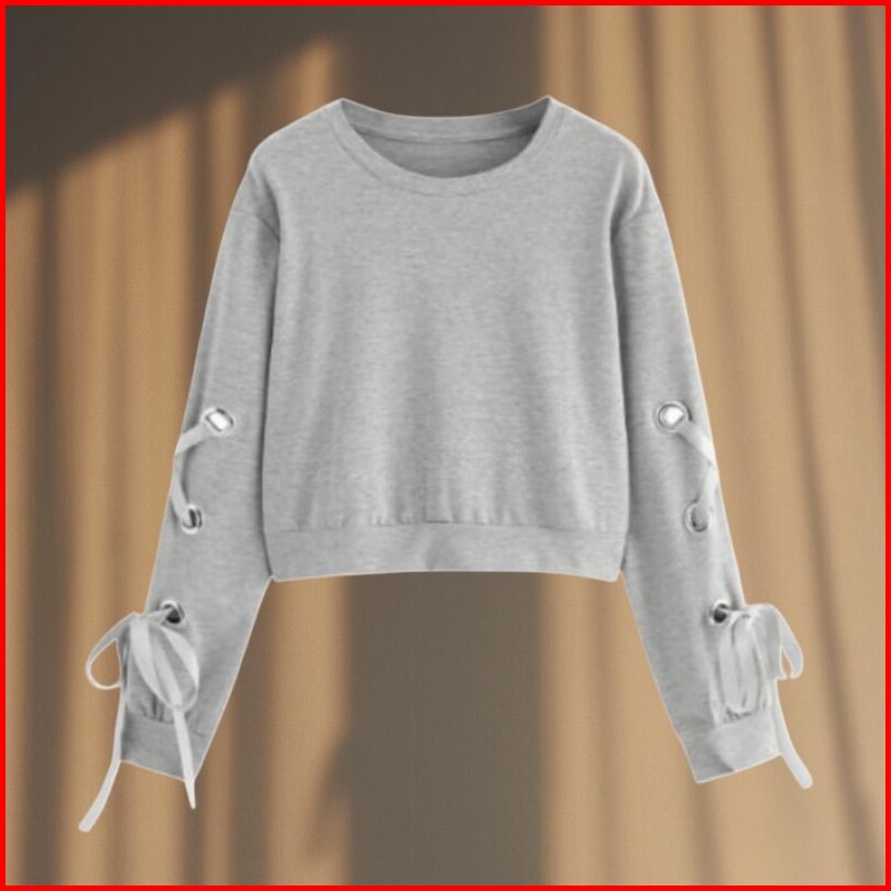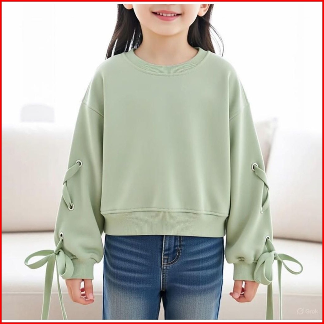 Baju Sweater Crop Top Tali Pita Atasan Lengan Panjang Trend Kekinian Anak Perempuan Usia 2-13 Tahun