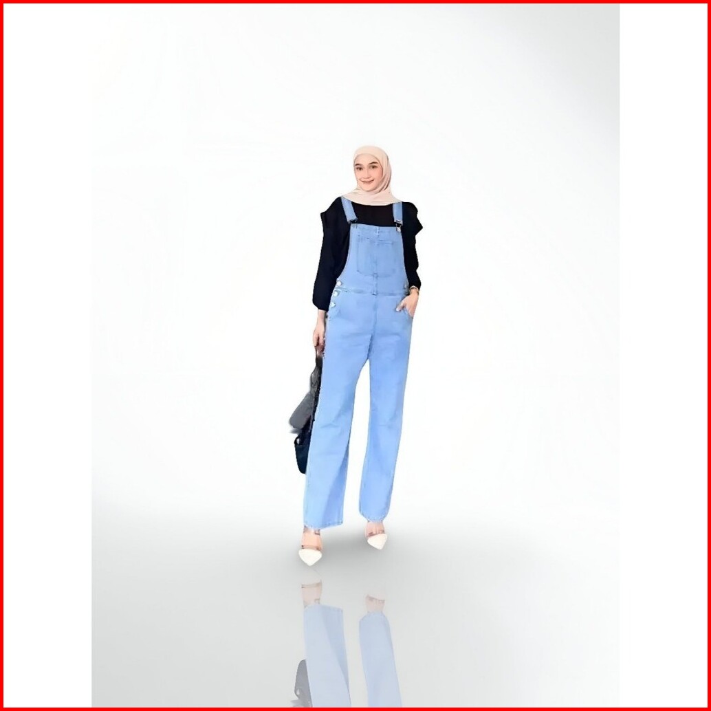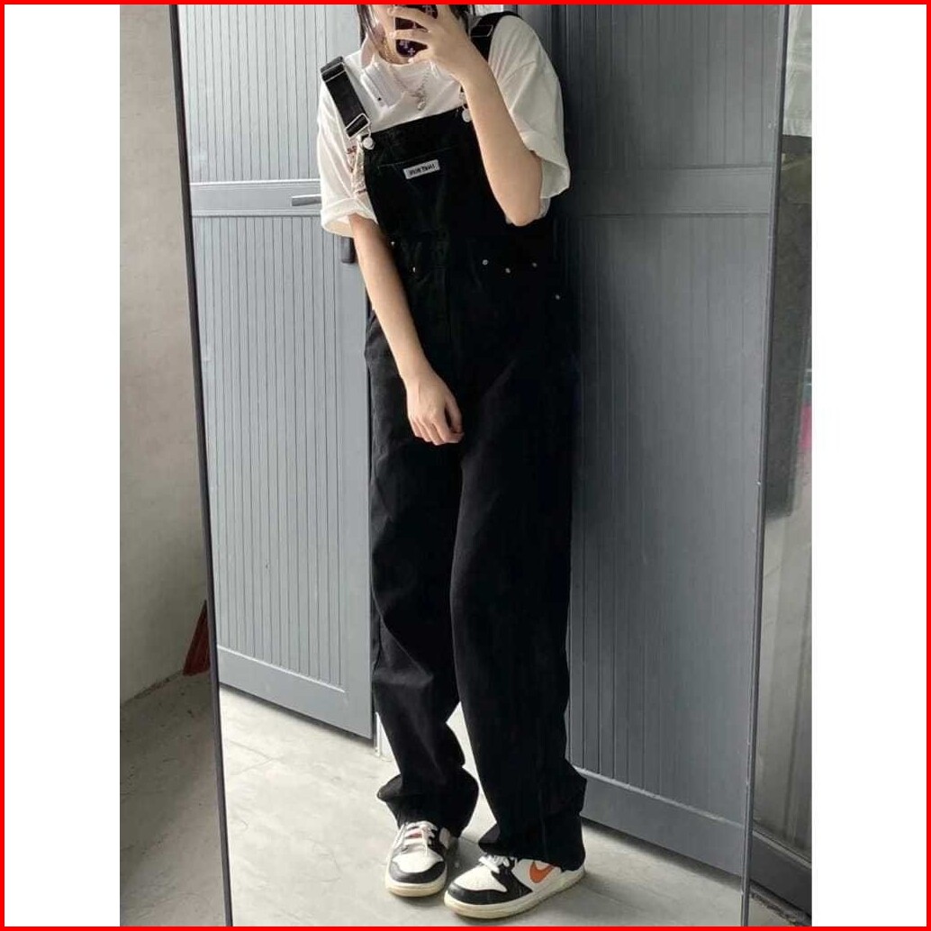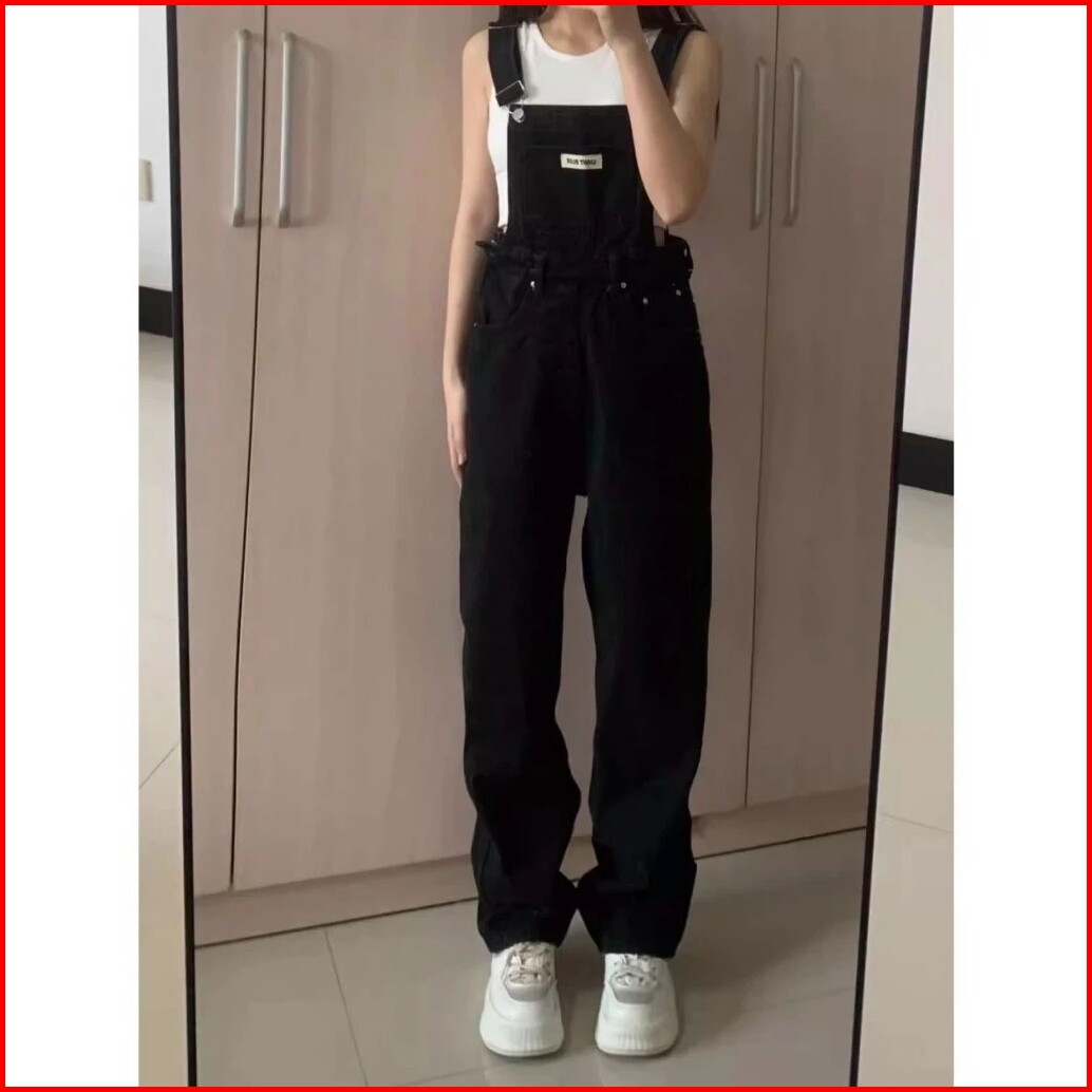 Overall Jumpsuit Plus Size Celana Lebar Kaki Longgar Gaya Korea Style Denim Dan Hitam Termurah