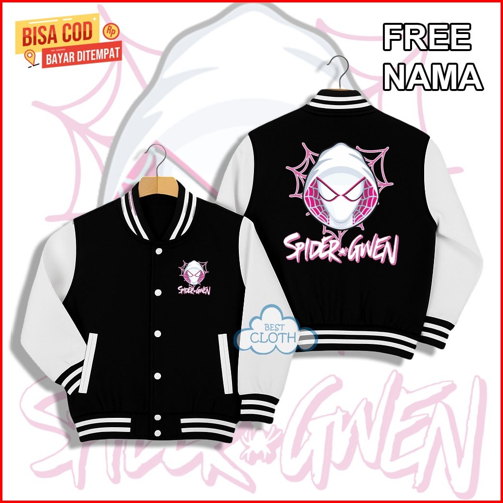 Jaket Varsity Anak - Spider Gwen - - Free Nama