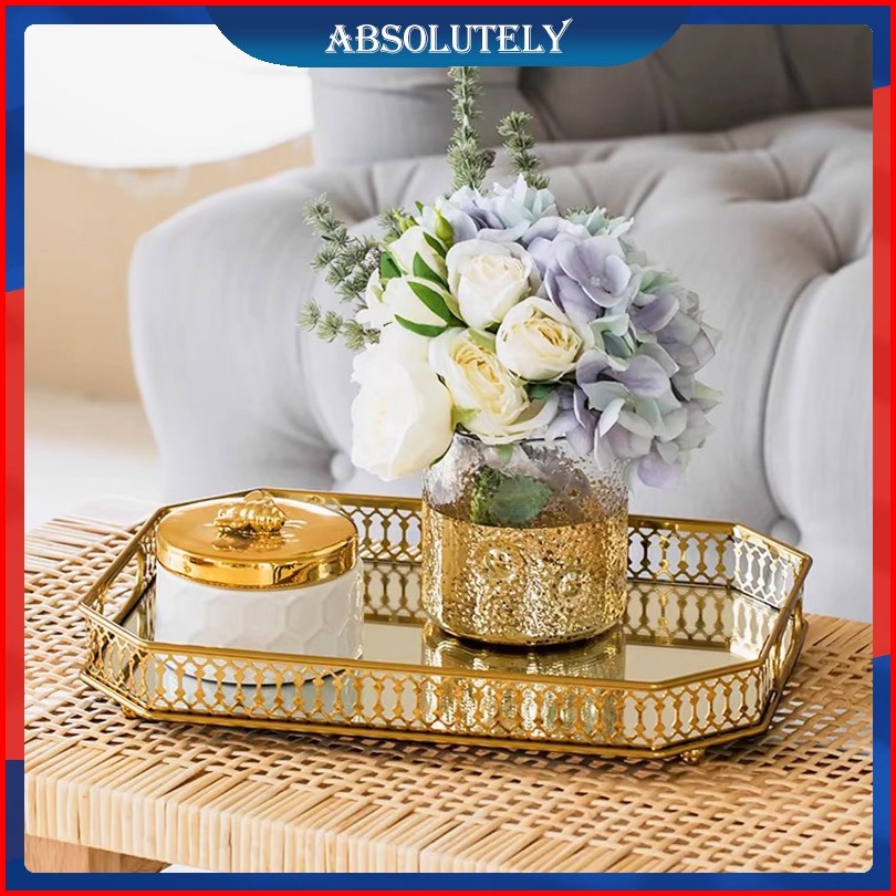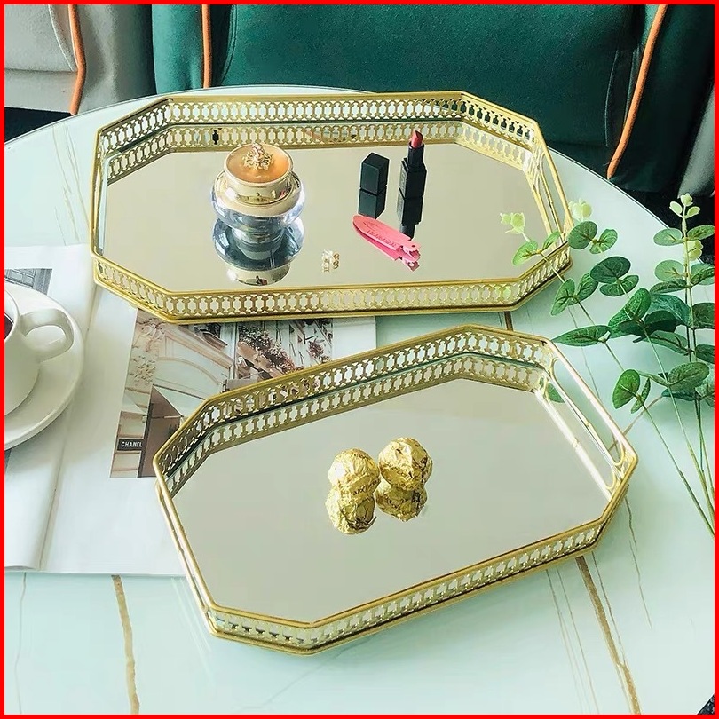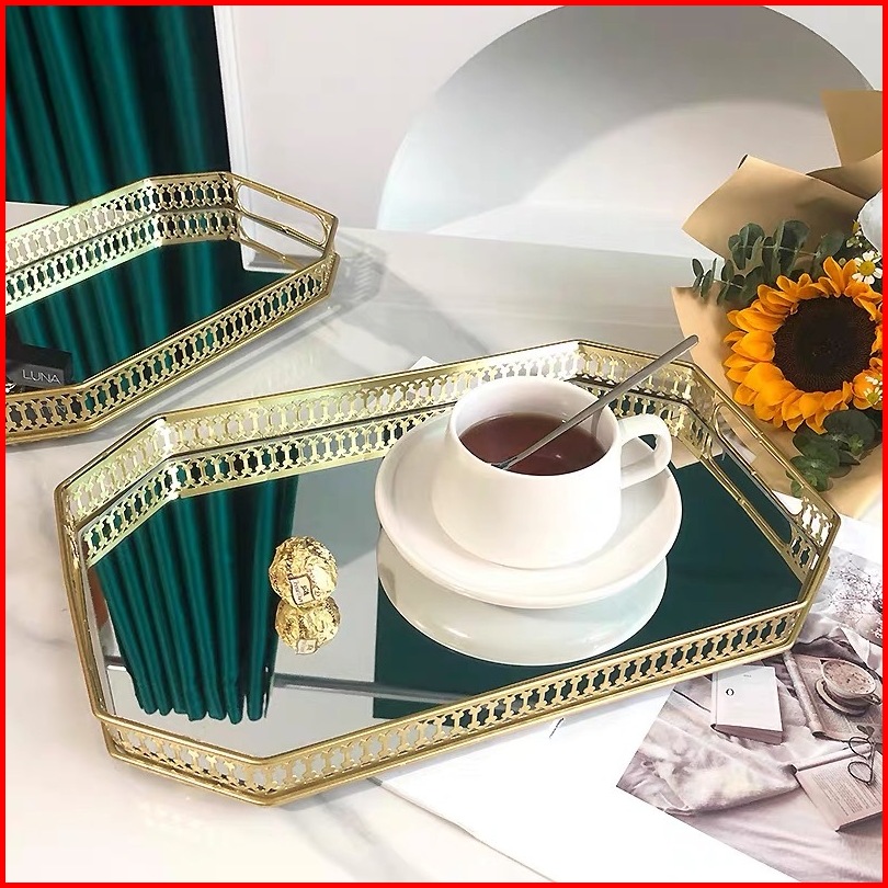 Nampan Aesthetic Nampan Estetik Mewah Tray Aesthetic Nordic Cahaya Gaya Mewah Besi Tempa Kaca Cermin Dasar Tray Ruang Ta