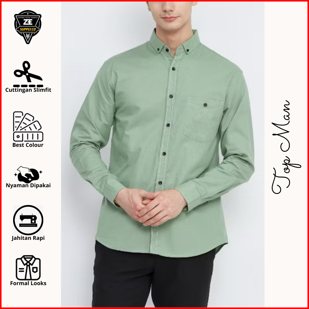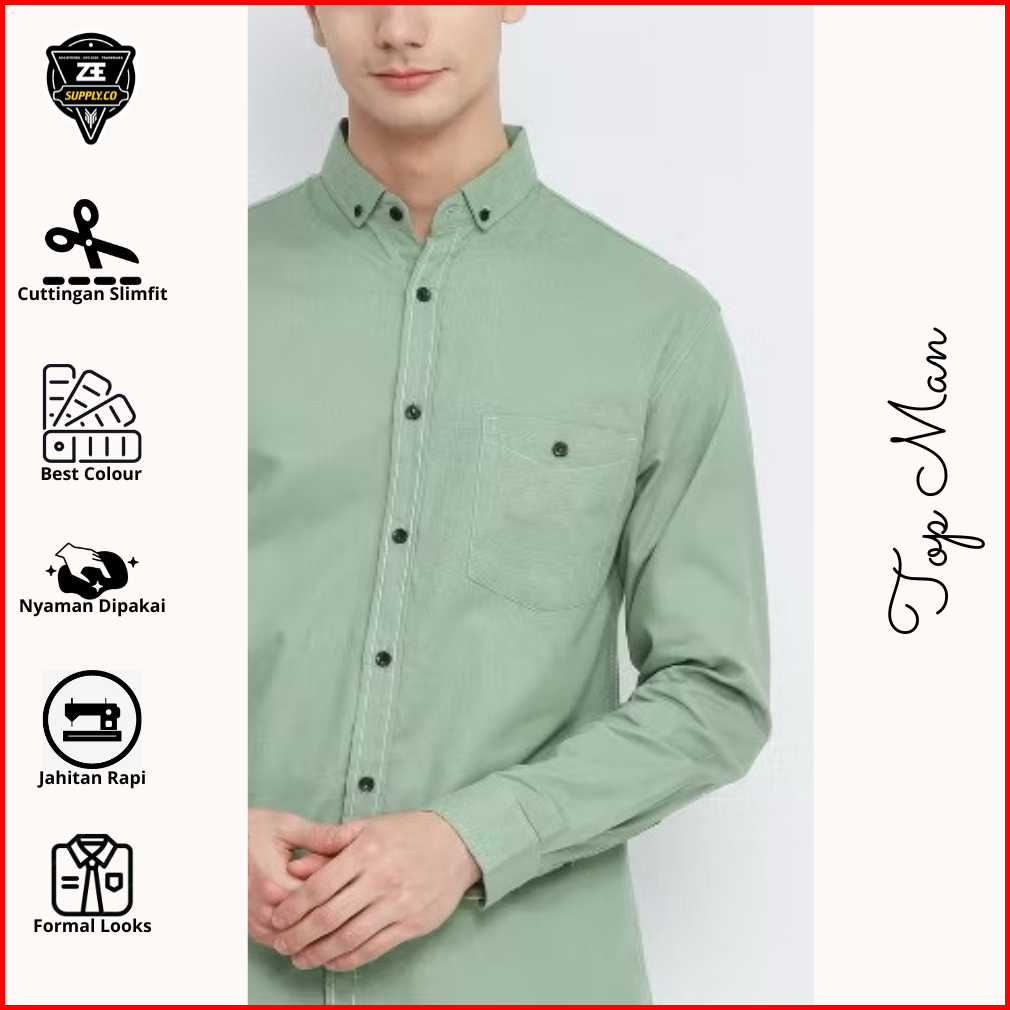 Kemeja Hijau Sage Pria Hem Lengan Panjang Dan Pendek Katun Soft