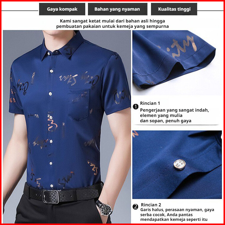 Gratis Ongkir Keren Bernapas M-4xlkemeja Pria Lengan Pendek Lembut Bebas Besi Kemeja Lengan Pendek Cetak Kasual Bisnis T