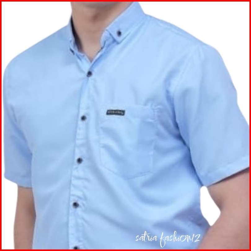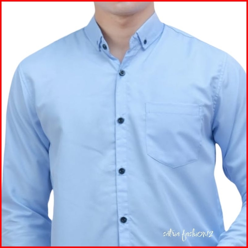 Kemeja Pria Polos Lengan Panjang Pendek Soft Blue Slim Fit Adem Kerja Kantor