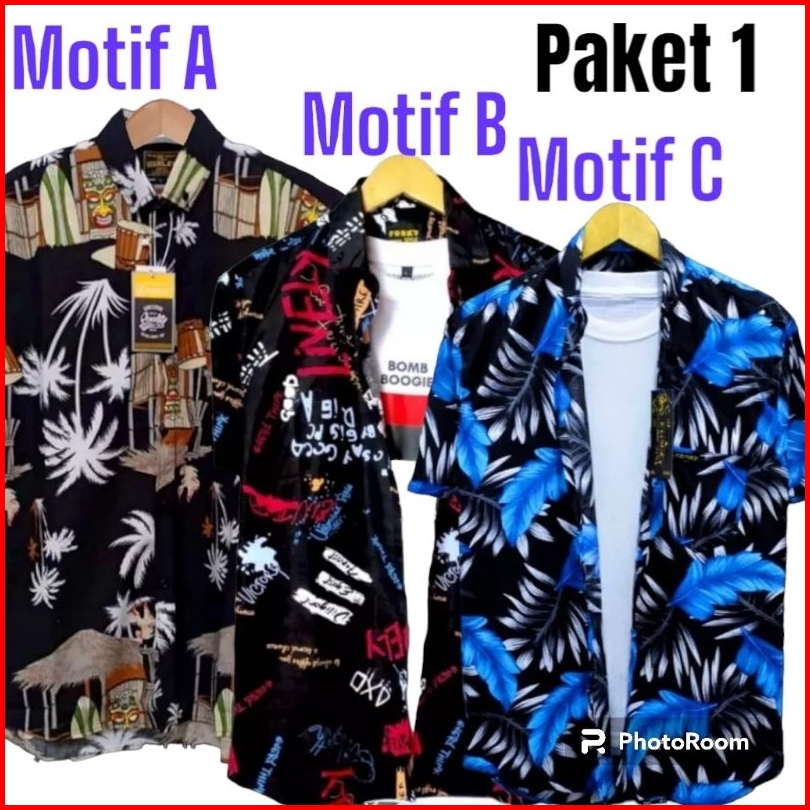 Promo Kemeja Motif Pantai Hawai Lengan Pendek Paket Hemet 3 Kemeja Motif Full Paket Bundling Termurah Gubuk Putih Terlar
