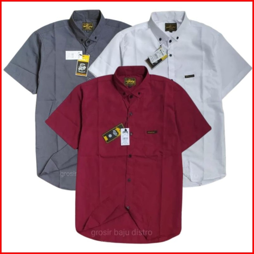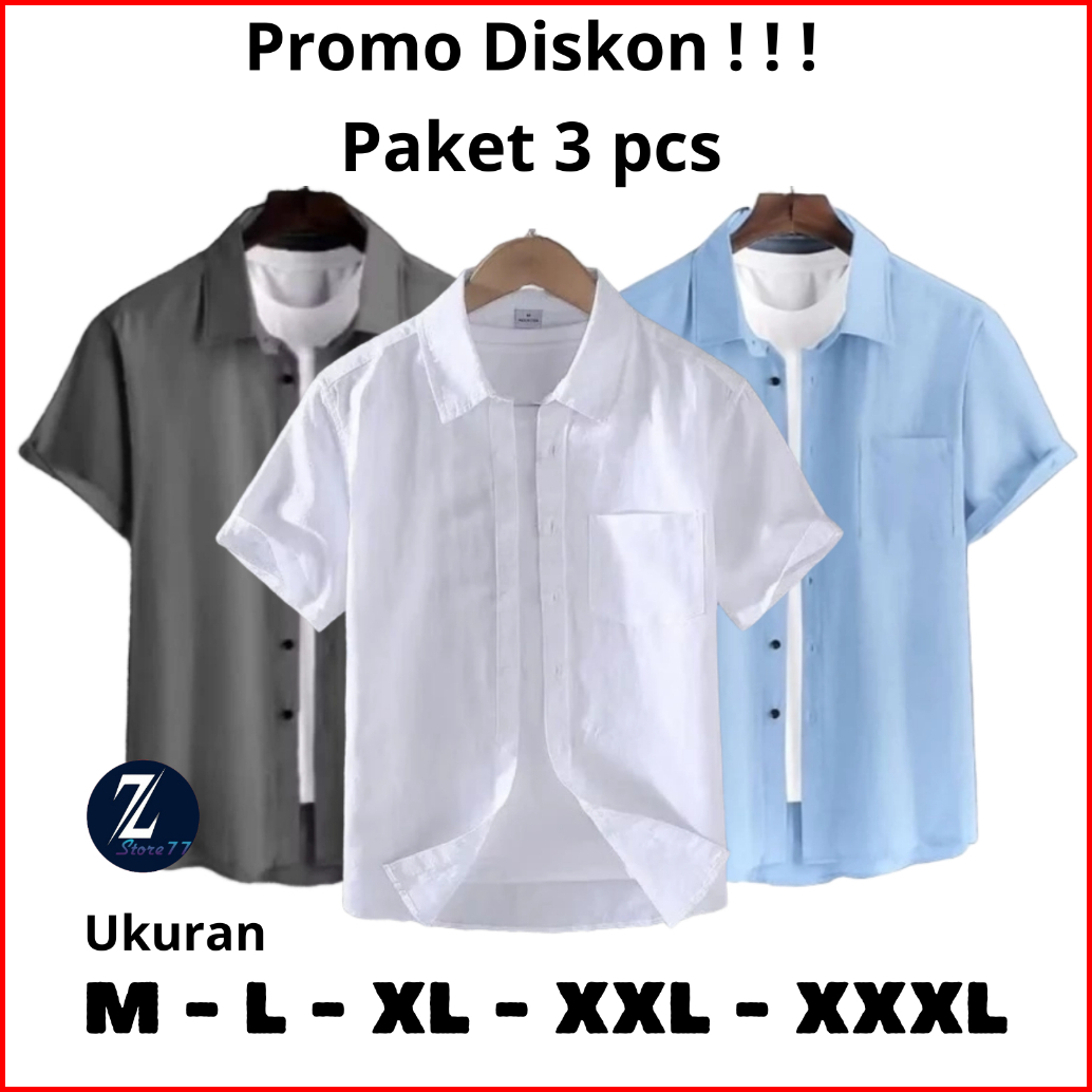 Paket 3 Pcs Kemeja Polos Pria Lengan Pendek Baju Atasan Cowok Model Slimfit Jumbo Premium Original Distro Hem Laki Dewas