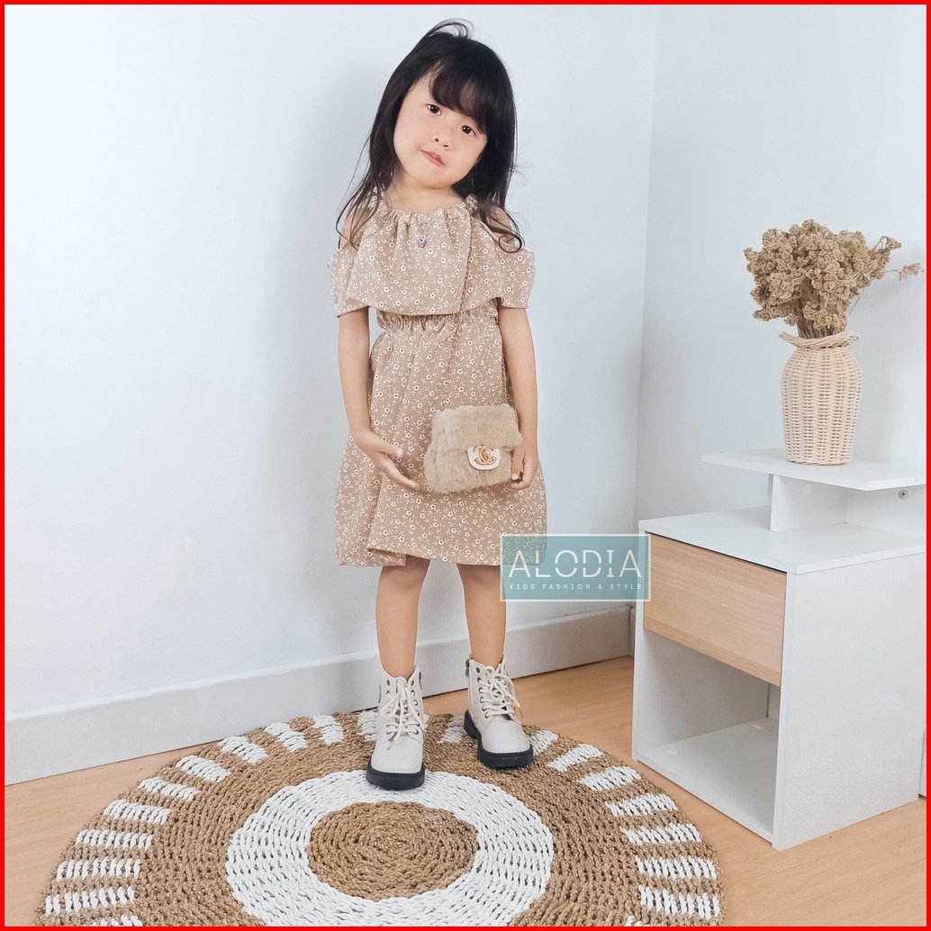 Alodia Kids Yuna Dress 1-8 Tahun Bahan Shakila Printing Model Sabrina
