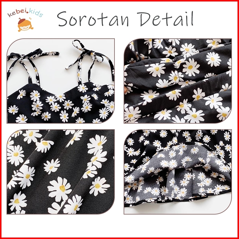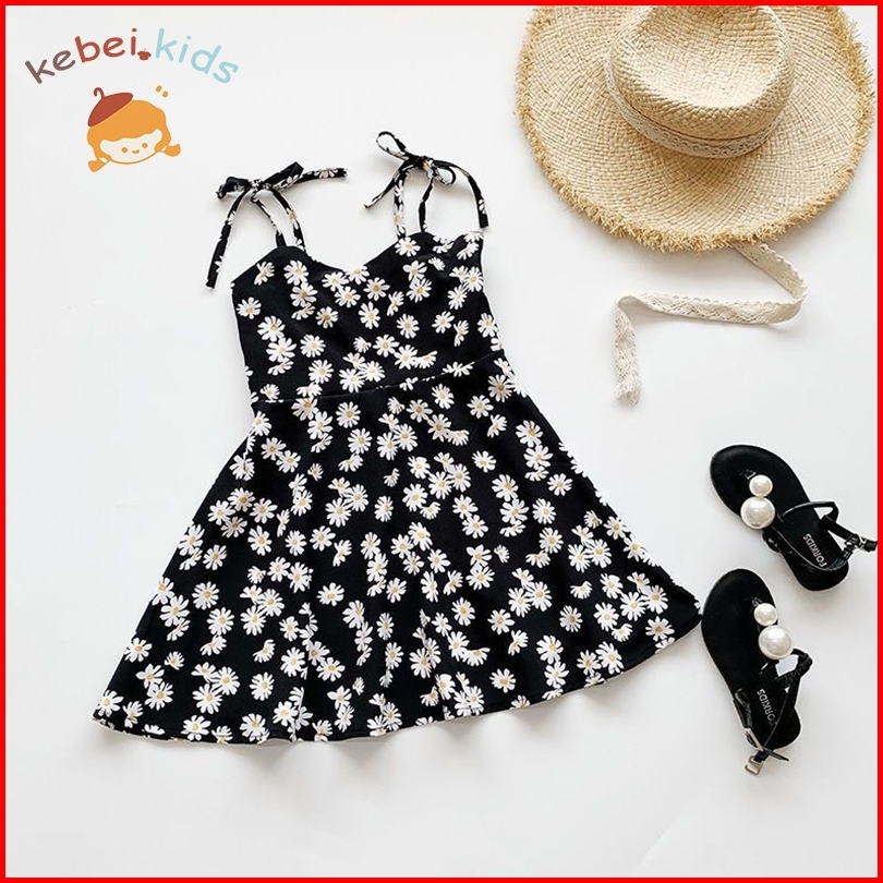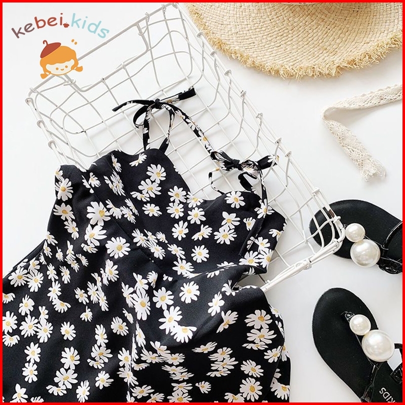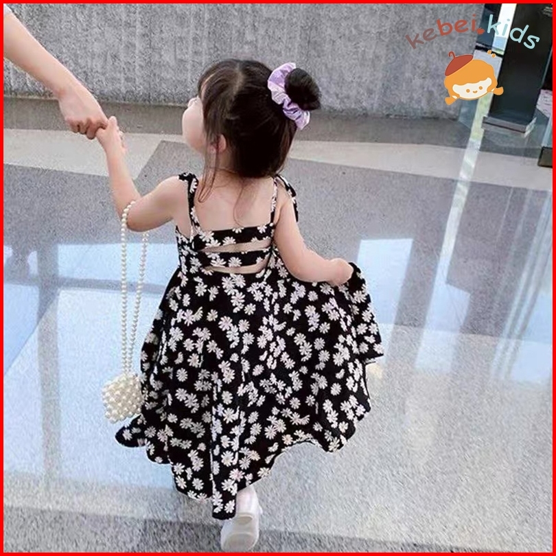 Kebei.kids-gaun Musim Panas Anak Perempuan Tali Bahu Bayi Perempuan Punggung Terbuka Motif Bunga Daisy Gaun Pantai Libur