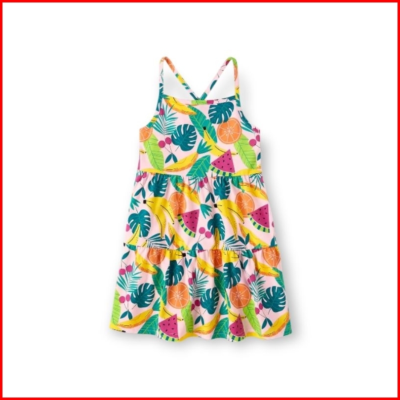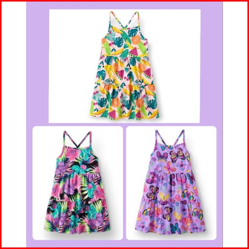 Dress Sleveless Anak Branded Dress Bahan Katun Dress Motif Tropical Printing