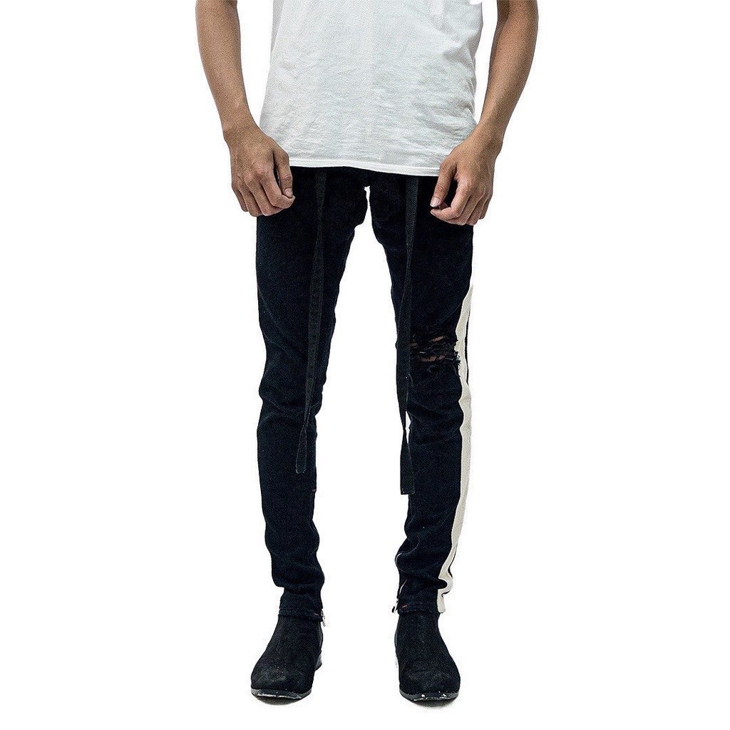 M1 Mid Distressed Black Dual Stripes Celana Jeans