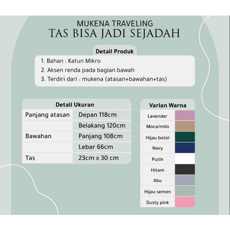 Full Set Sejadah + Mukena Katun Dewasa Premium Daily 2in1