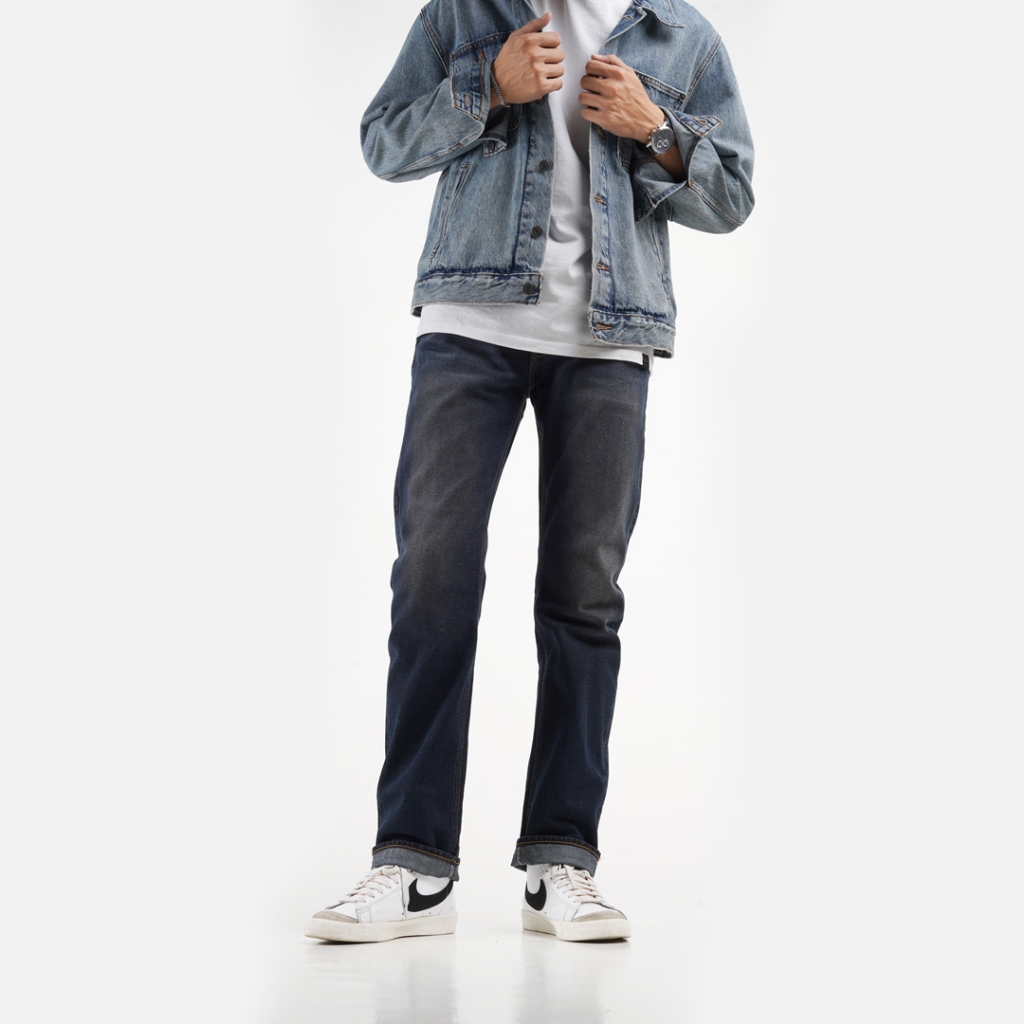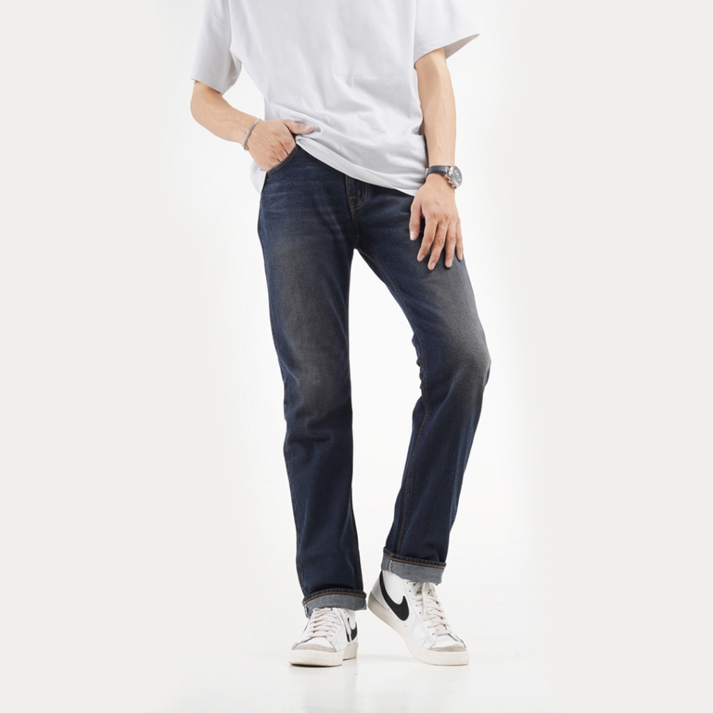 Volkvog Jeans Yaren Celana Panjang Washed Denim Pria Slim Straight Biru Gelap