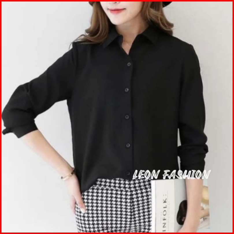Kemeja Polos Wanita Basic Kemeja Cewek Lengan Panjang Kemeja Atasan Shirt