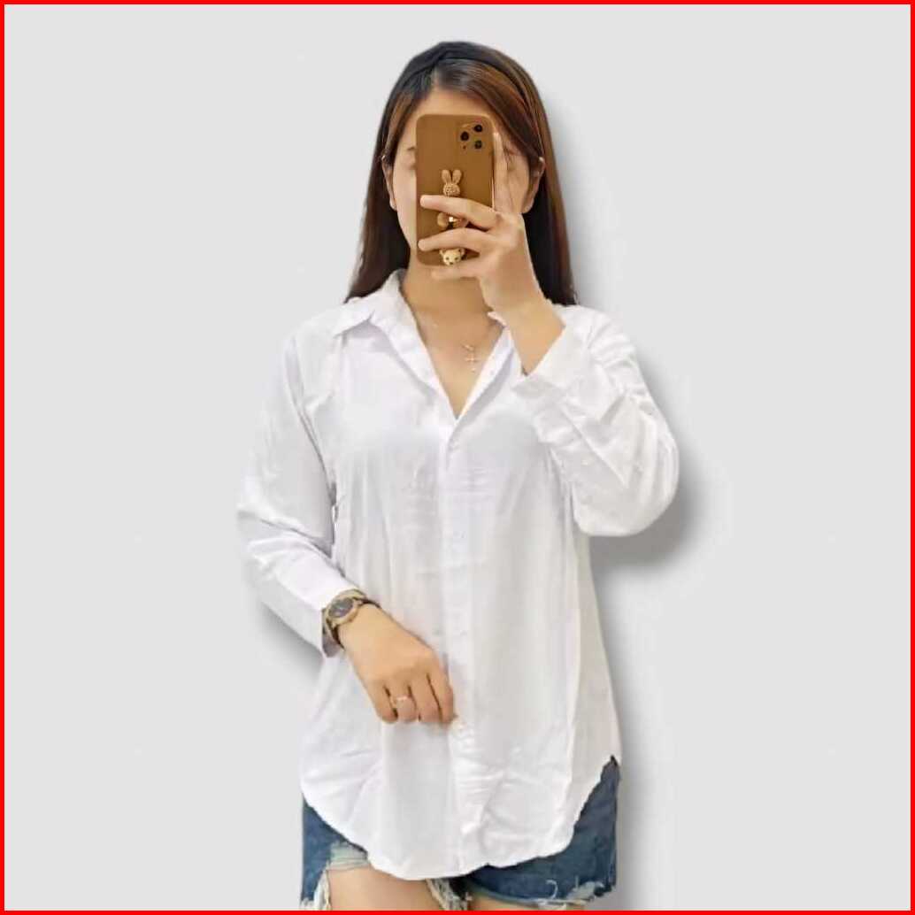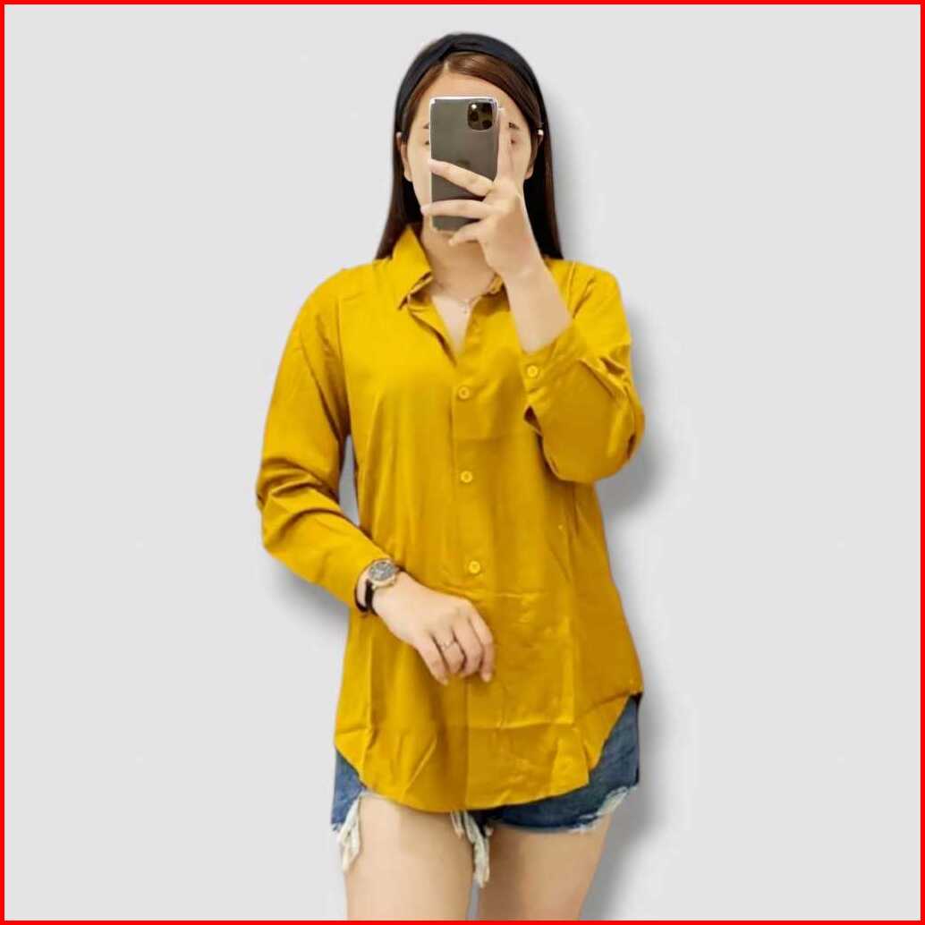 Atasan Kemeja Wanita Lengan Panjang Polos Varian Warna Kekinian Premium Oversize