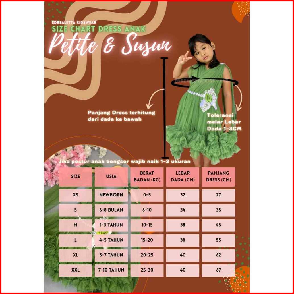 Edrel.id - Dress Petite Moirai Gaun Pesta Anak Perempuan Bisa Req Warna Free Bando