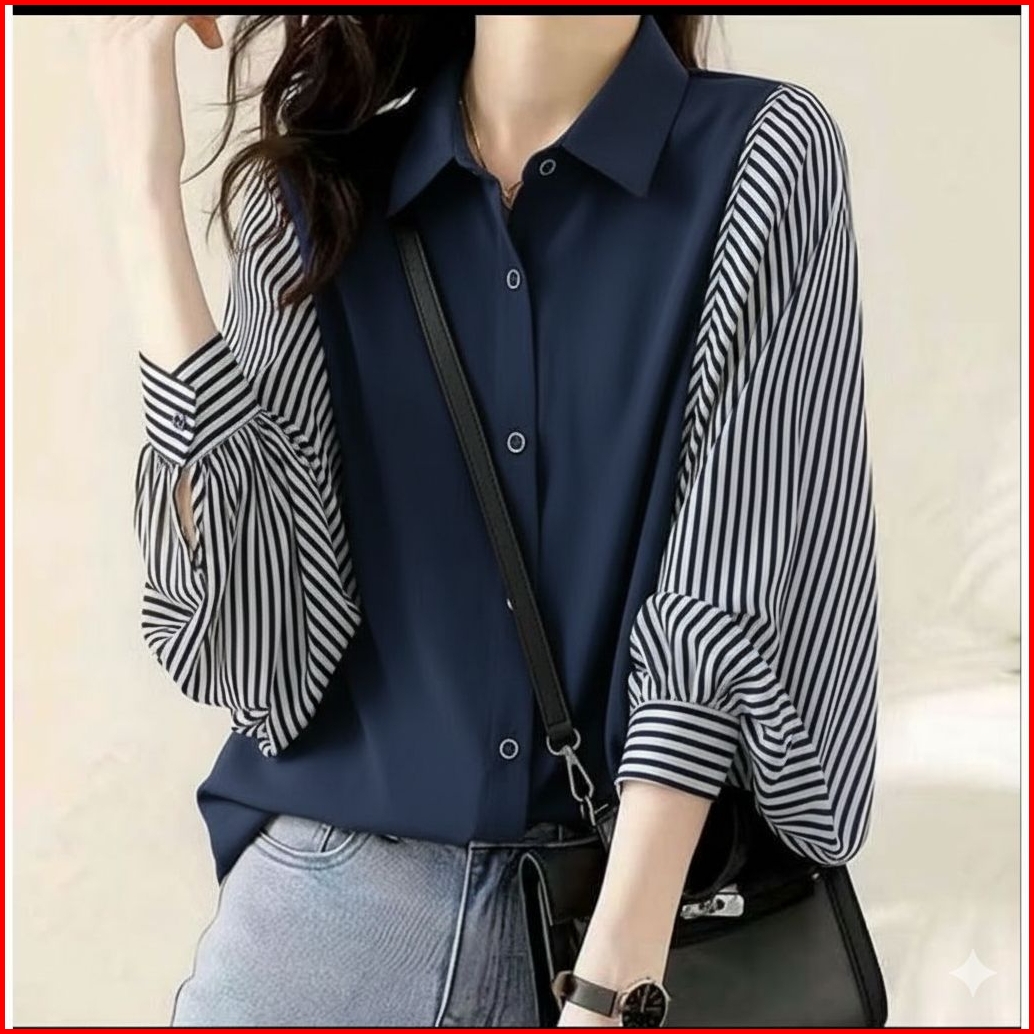 Laila Hand Stripe Kemeja Wanita Ukuran S-m-l-xl-xl-xxl-xxl