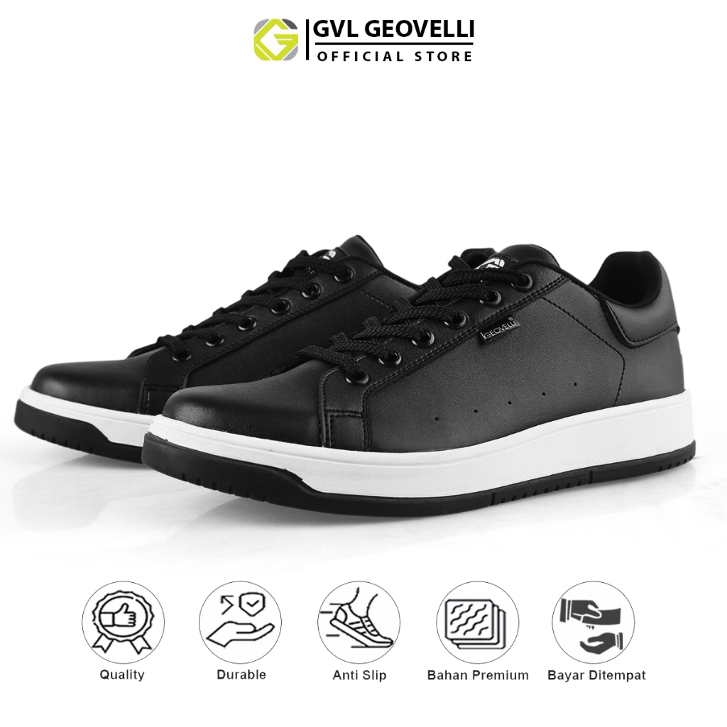 GVL Geovelli G3147 Mano Black | Sepatu Sneakers Hitam Putih Sneakers Casual Pria Dewasa - Geovelli