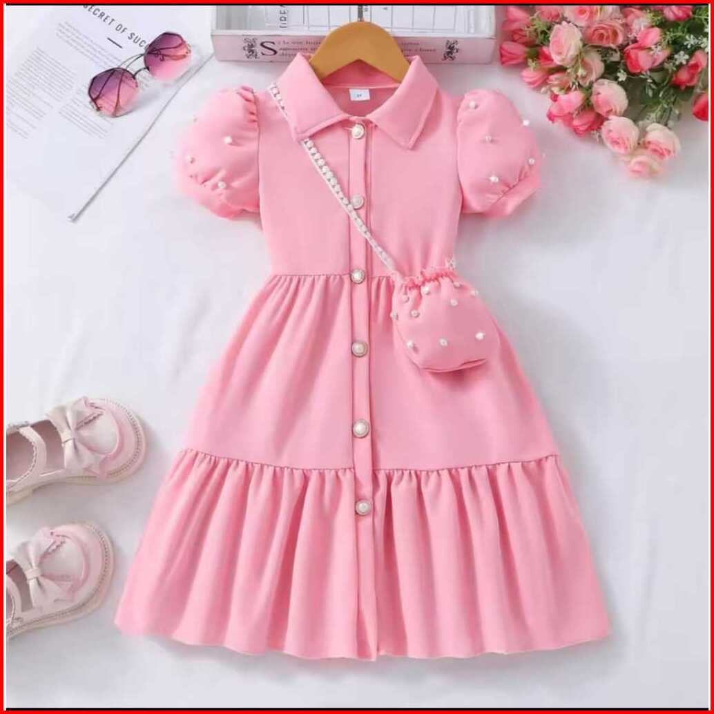 Dress Anak Korea Ziraa Pearr Renda Terbaru Free Tas Usia 5-10 Th Pink Maroon Merah Hitam Bangkok