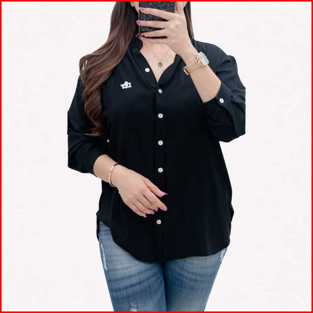 Kemeja Wanita Crinkle Airflow Terbaru Model Kerah Sanghay Pakaian Wanita Atasan Kemeja Blouse