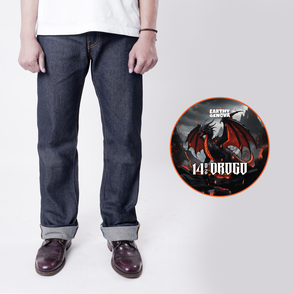 EARTHY GENOVA Denim NON SELVEDGE DROGO 14 Oz Sanforized Celana Raw Jeans Pria Slim Straight Cut Deep Indigo Color