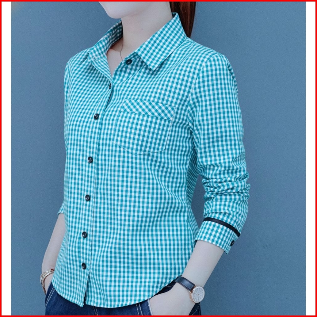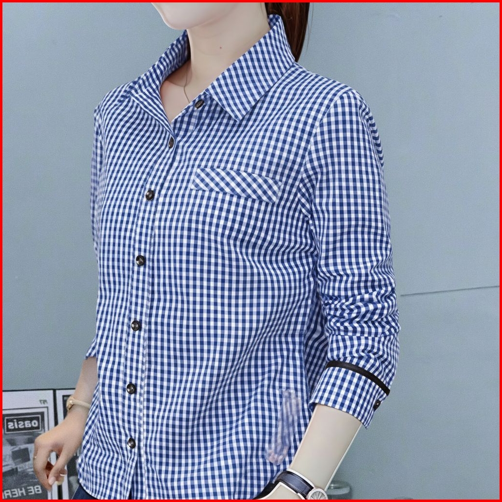 Blouse Motif Vichy Atasan Kemeja Wanita Kancing Modern Kekinian Katun Lembut