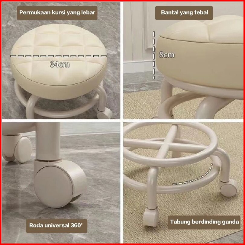 Kursi Bulat Roda Kursi Santai Estetik Kursi Serbaguna Kursi Meja Rias Bangku Anak Dewasa Beroda Kursi Belajar Putar
