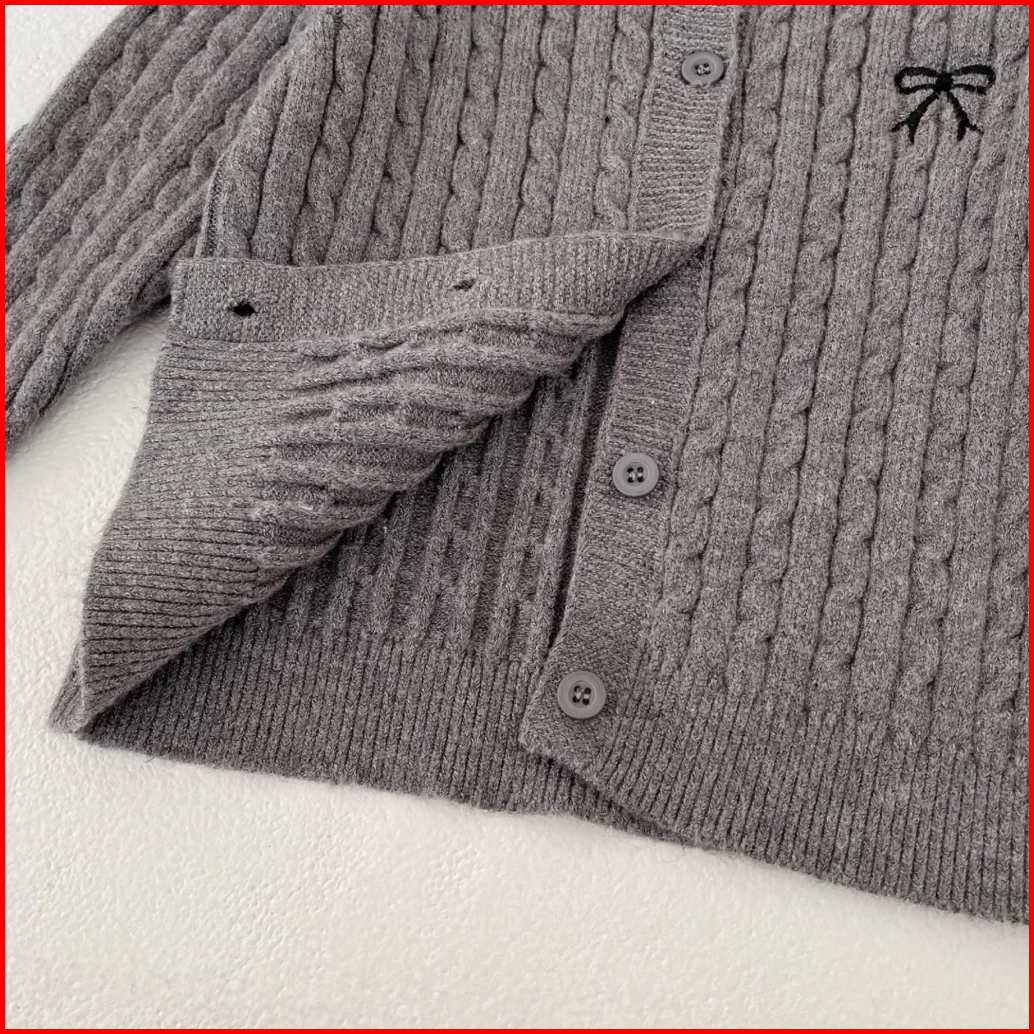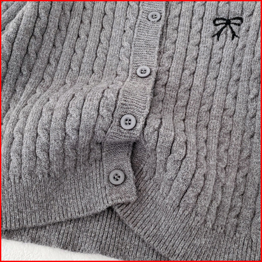Kaola - Grey Bow Cardigan Rajut Balita Anak Perempuan
