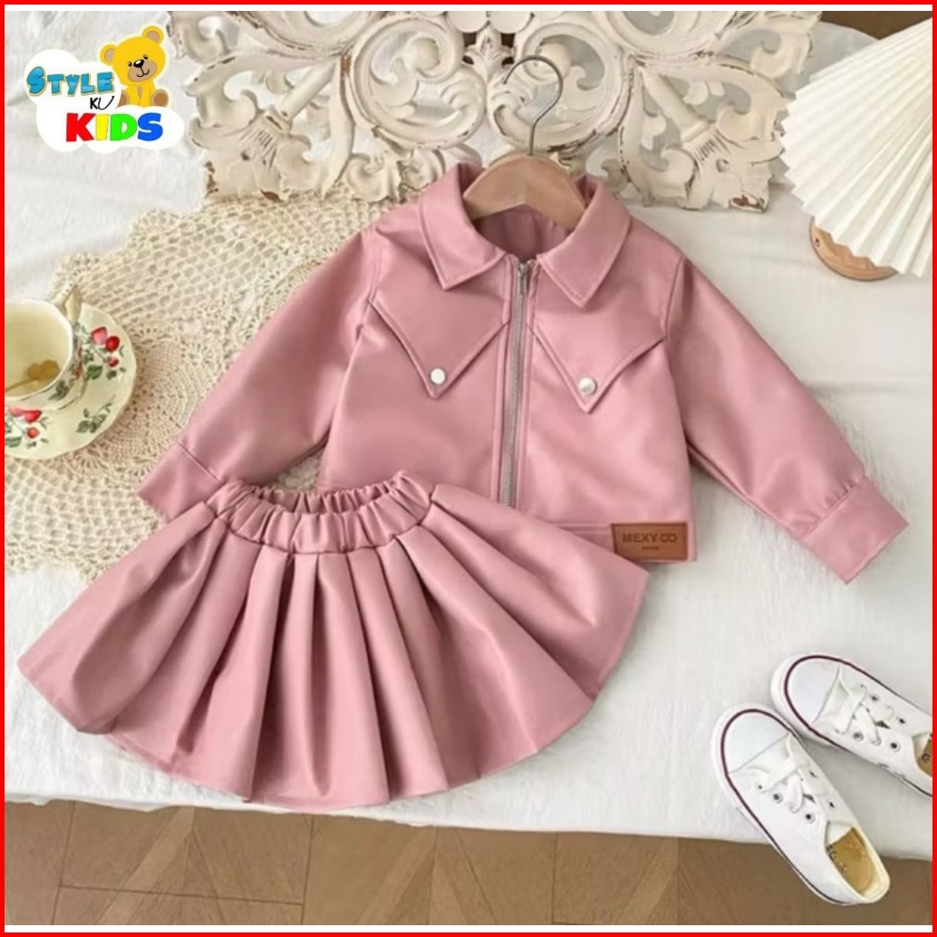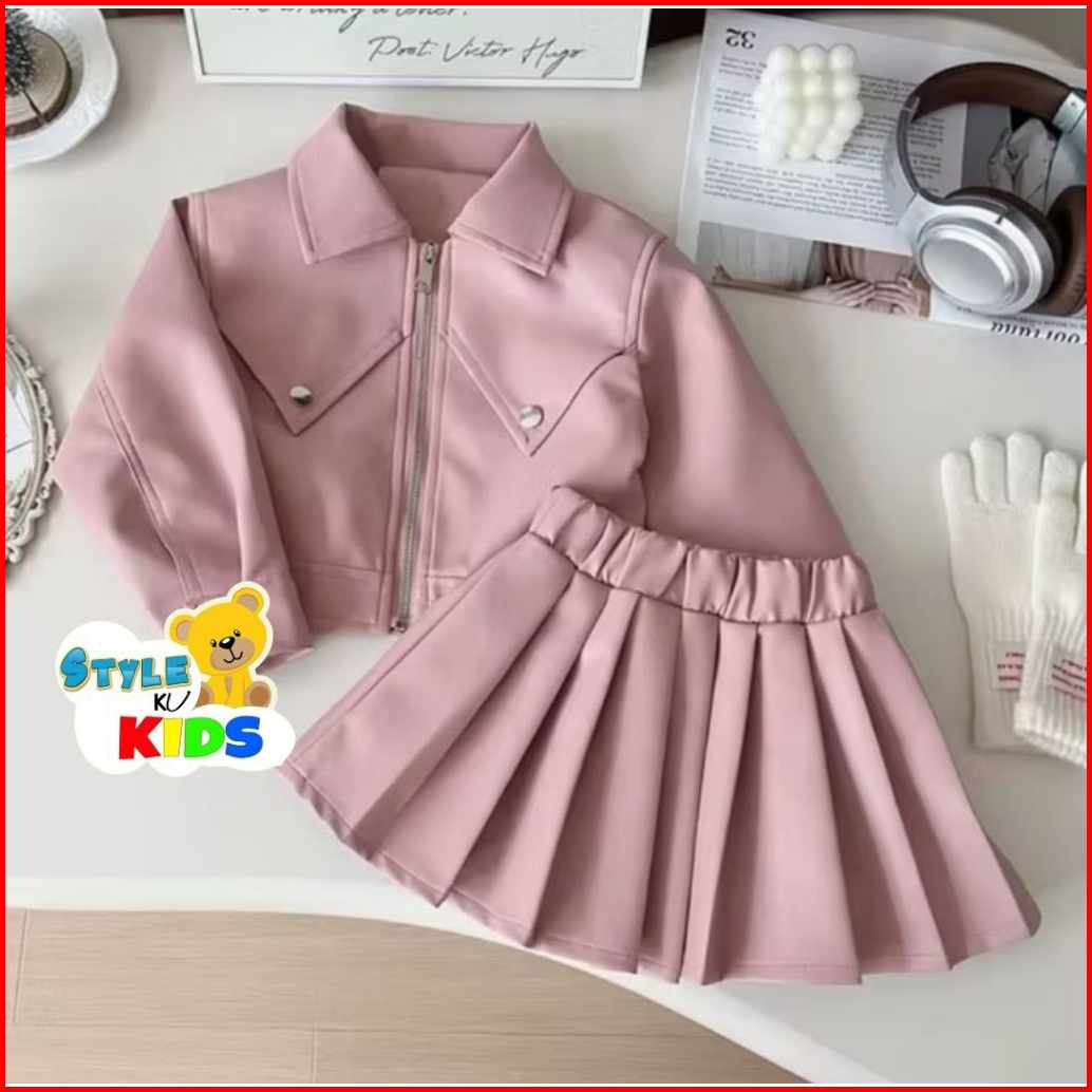 Set Jaket Rok Kulit Mini Anak Pinky Jaket Fashion Show Jaket Lucu