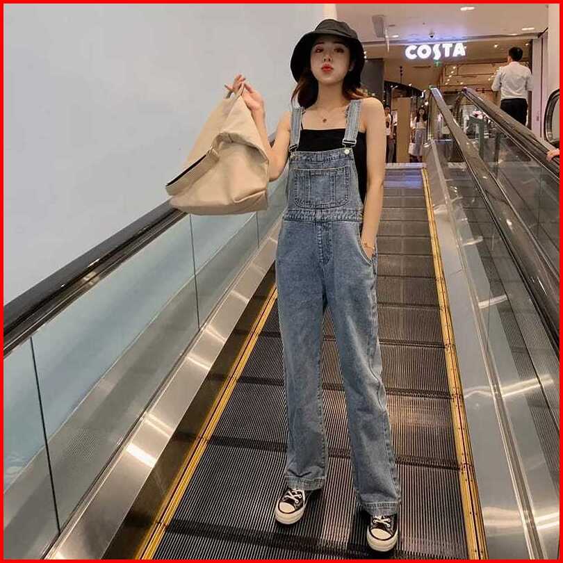 Overall Denim Panjang Jumpsuit Celana Panjang Jumpsuit Wanita Fashion Simple Lucu Jumpsuit Longgar Versi Korea Wanita Ko
