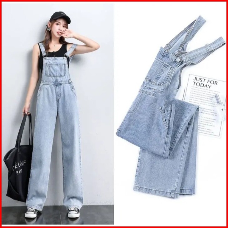 Murah Lebay - Overall Denim Panjang Jumpsuit Celana Panjang Jumpsuit Wanita Fashion Simple Lucu Jumpsuit Longgar Versi K