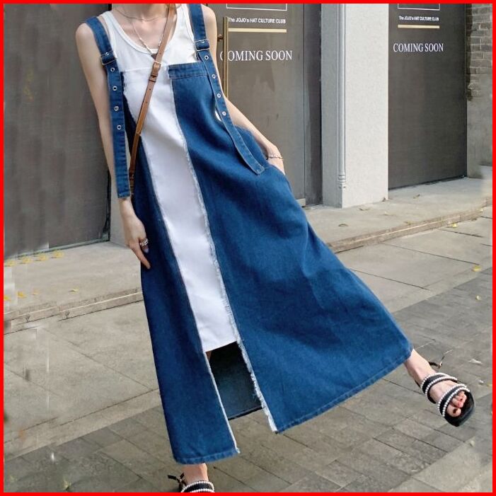 Jessa Overall Jeans Kombinasi Linen Premium Kekinian Fashion Wanita Dewasa