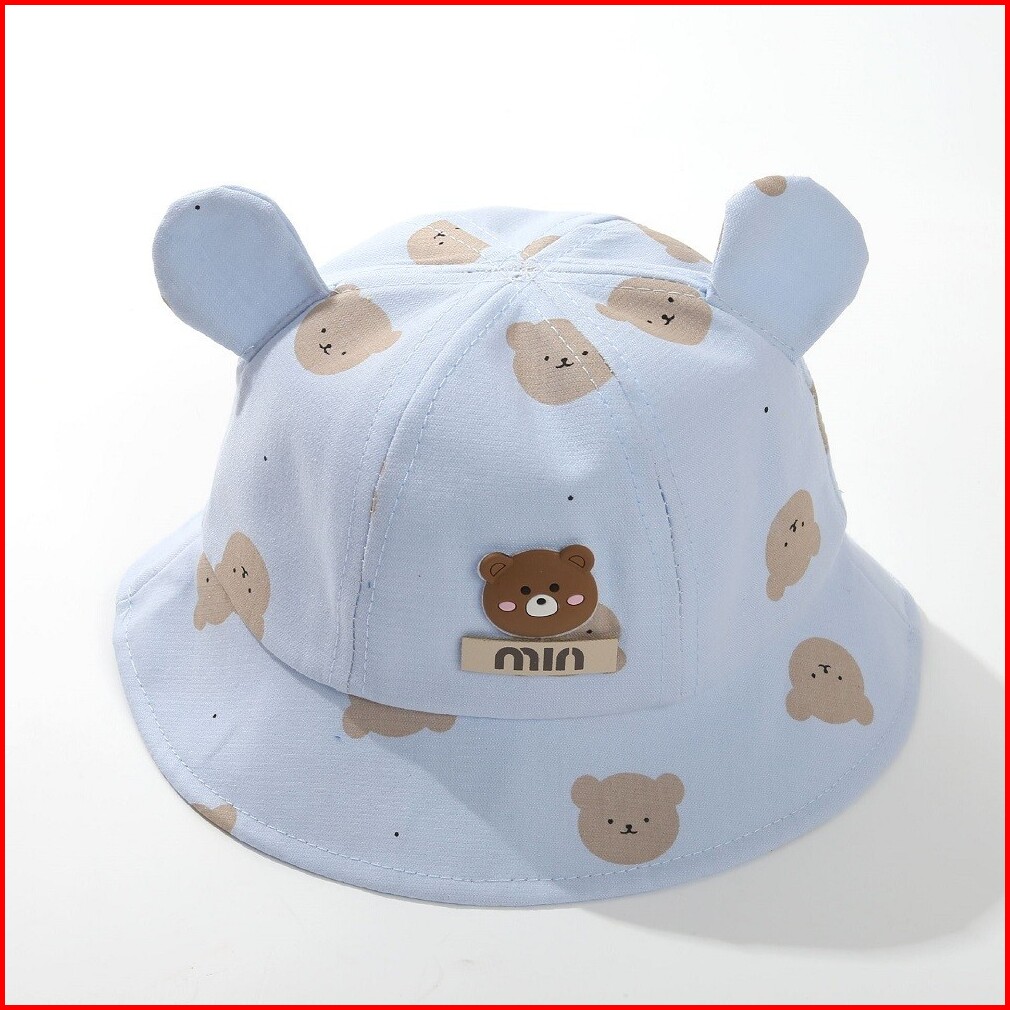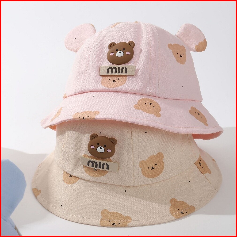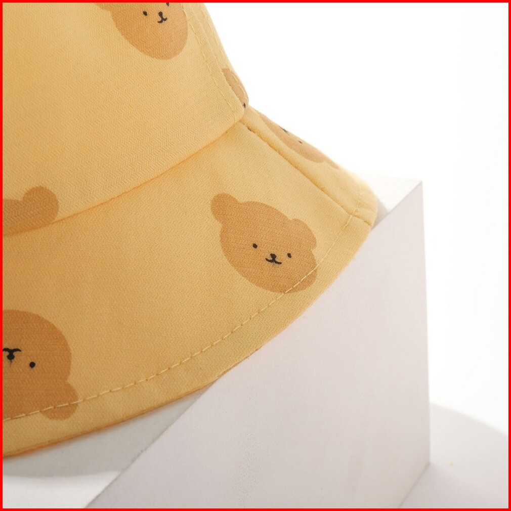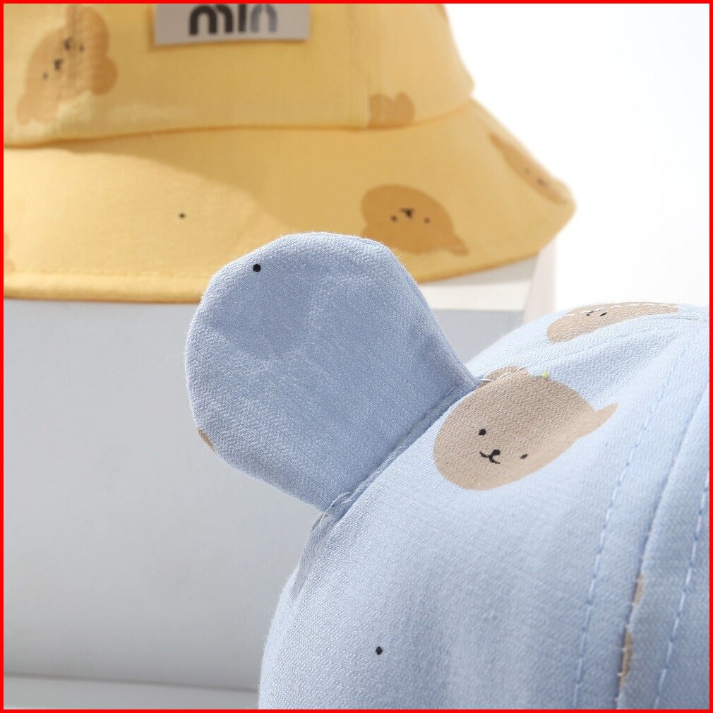 Topi Anak Bulat Bear Bucket Hat Tali Motif Kuping Bear Catton