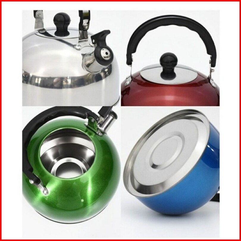 Teko Kettle Air Uap Bunyi Siul Peluit Wishtle Stainless Steel Warna-warni Pegangan Anti Panas Ceret Air Free Ongkir