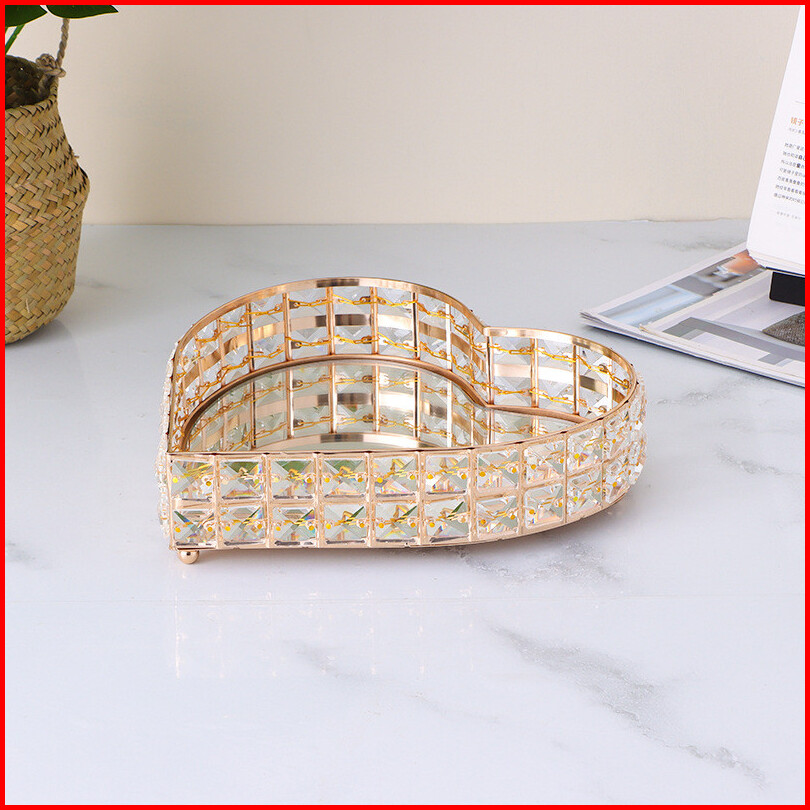 Loooopy Mewah Aesthetic Nampan Crystal Tray Persegi Panjang Nampan Besi Tempa Kaca Cermin Dasar Tray Nampan Cinta Ruang