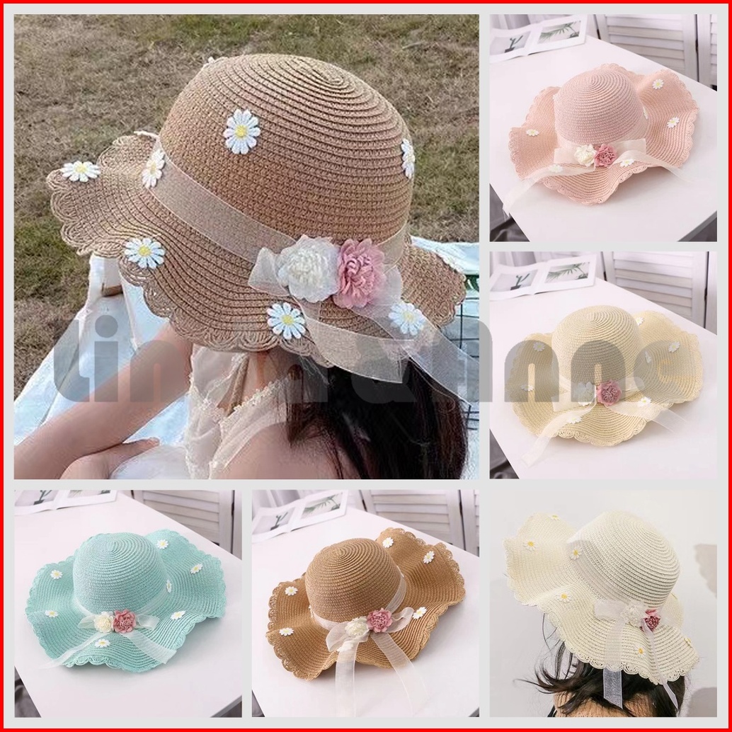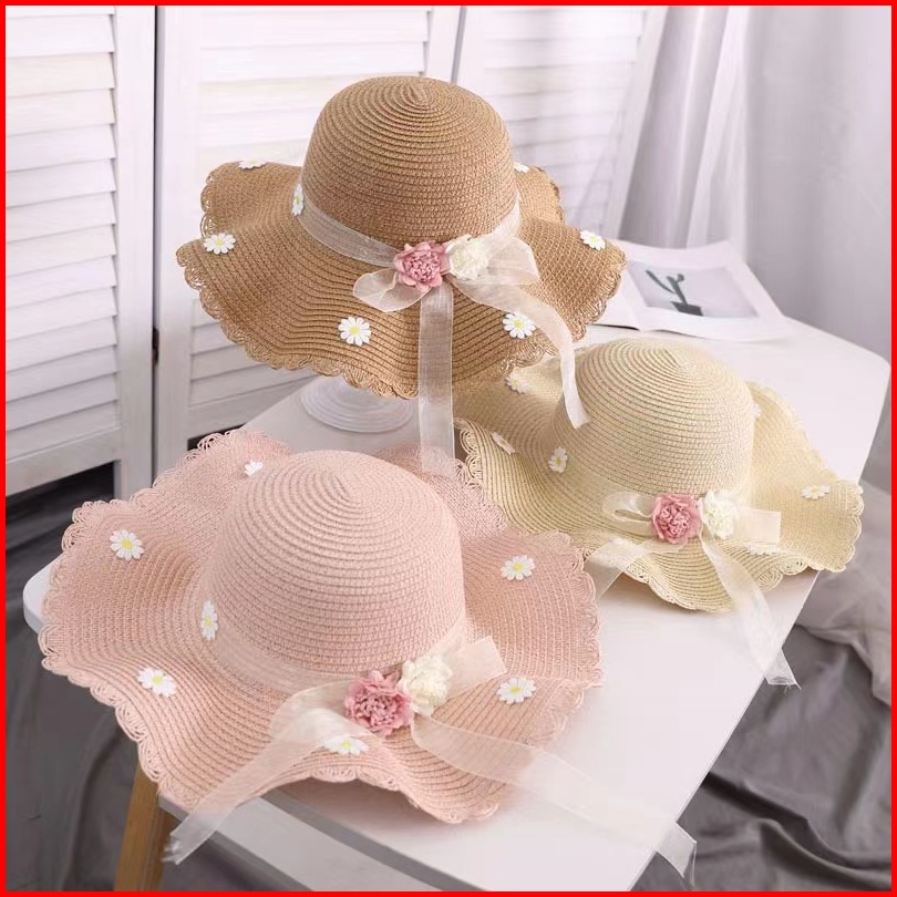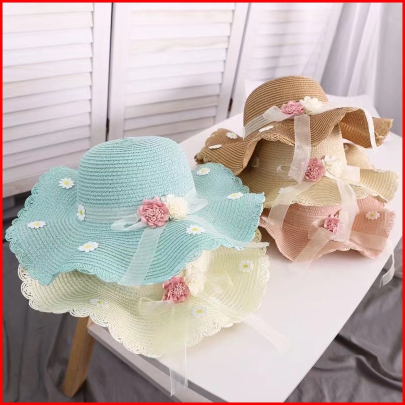 Topi Pantai Gelombang Anak Jerami Flowly Beach Hat Kids Summer Hat