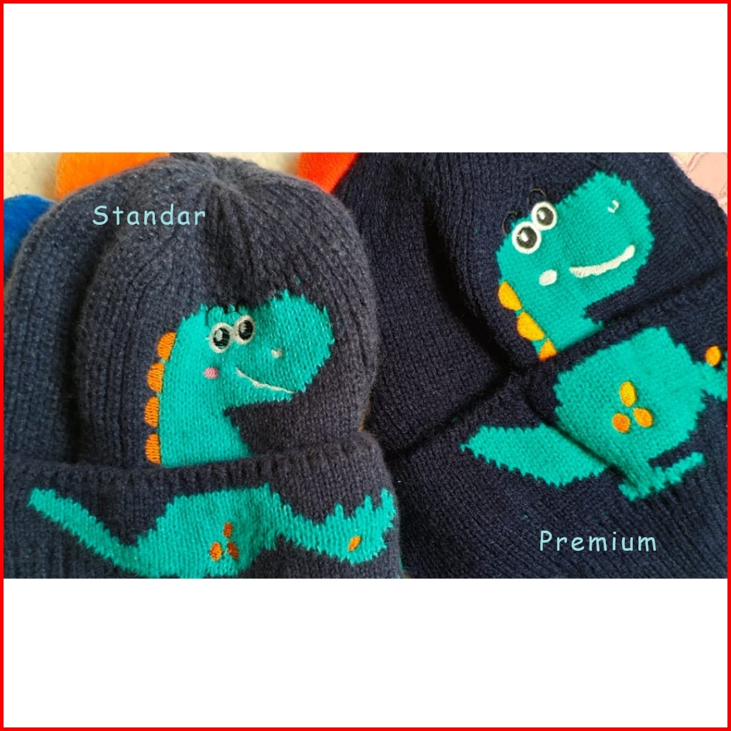 Topi Kupluk Rajut Anak Cute Kartun Little Dino Dinosaurus Knit Hat Boy And Girl