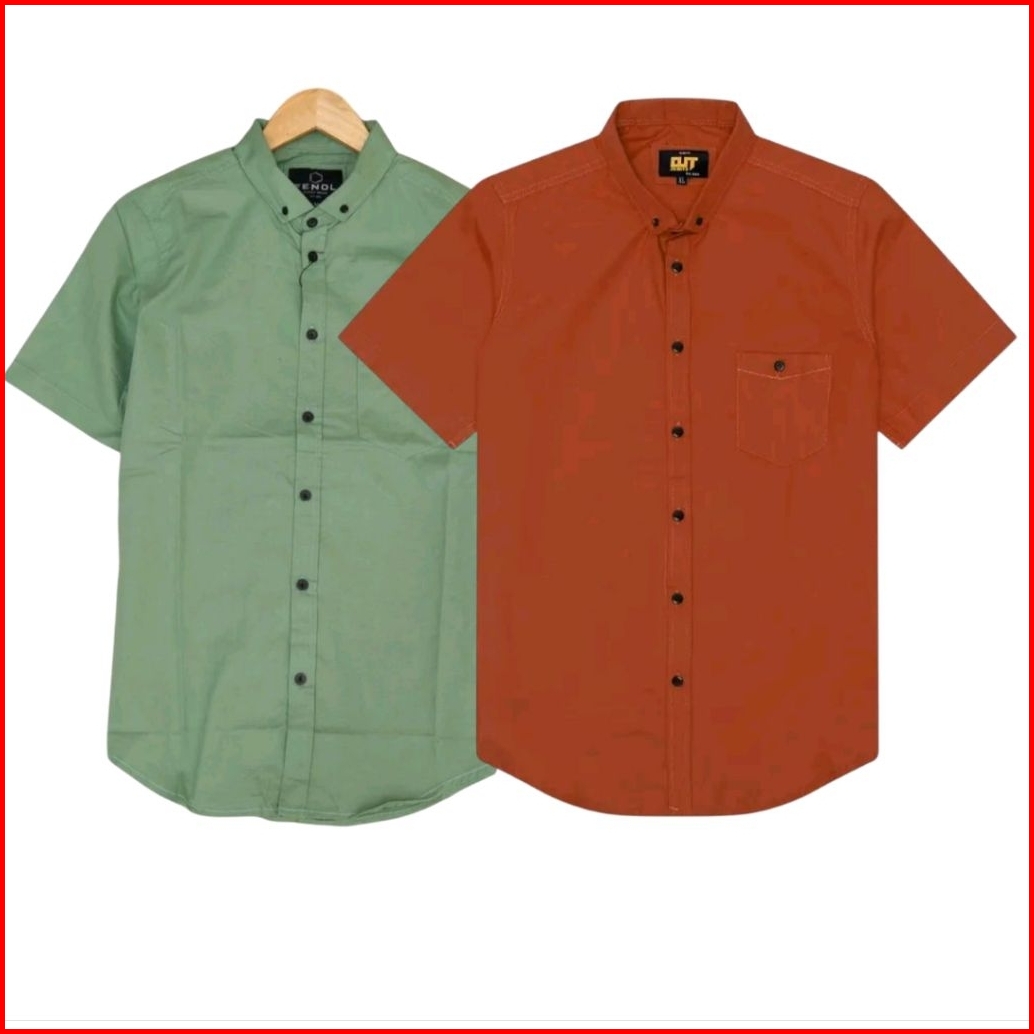 Paket Hemat Special 2 Pcs 50ribuan Kemeja Polos Pria Lengan Pendek