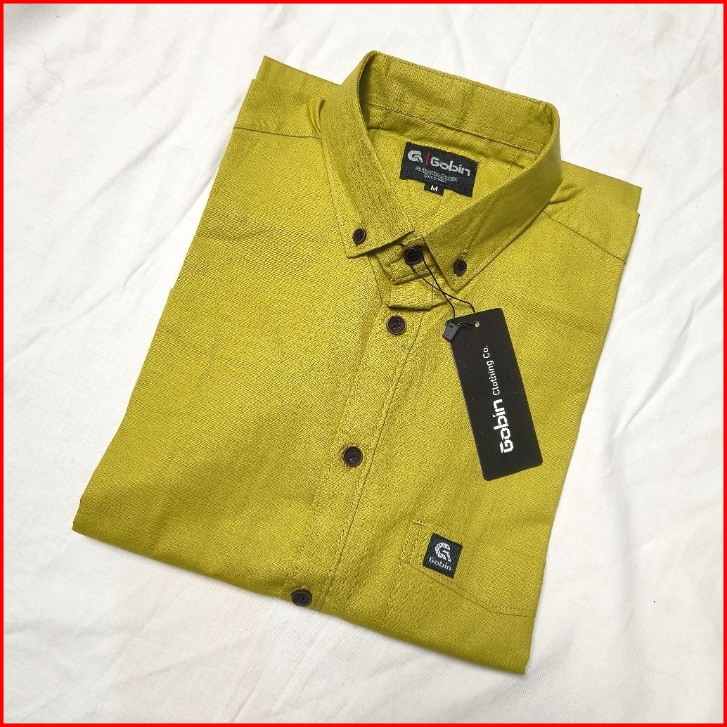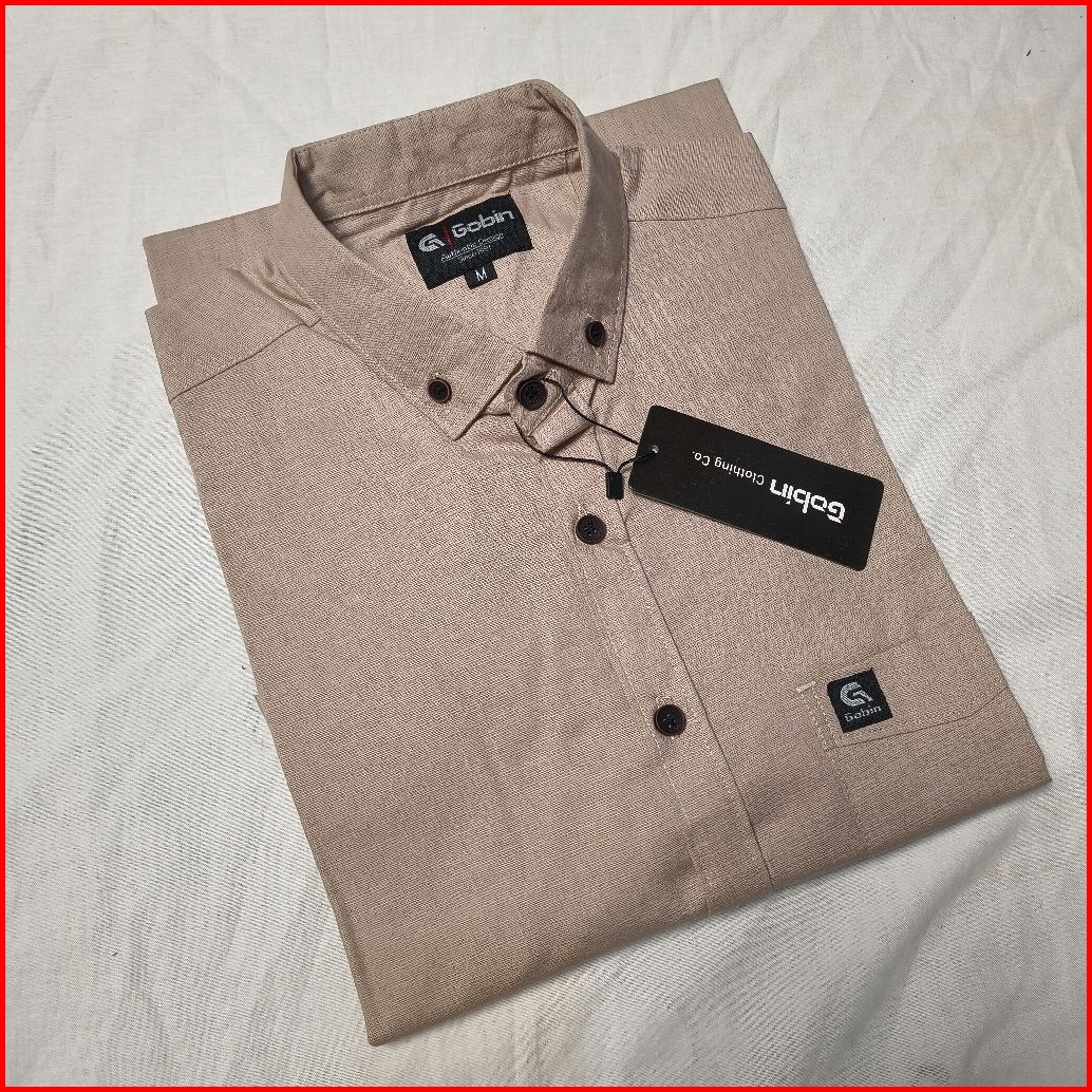 Kemeja Pria Lengan Pendek Original Premium Quality Bahan Baby Canfas Warna Mahogani