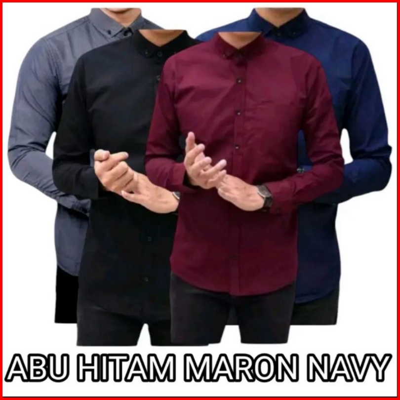 Paket 4 Pcs Kemeja Panjang Lengan Panjang Pria Dewasa Hitam Putih Baju Casual Nyaman Formal Slimfit