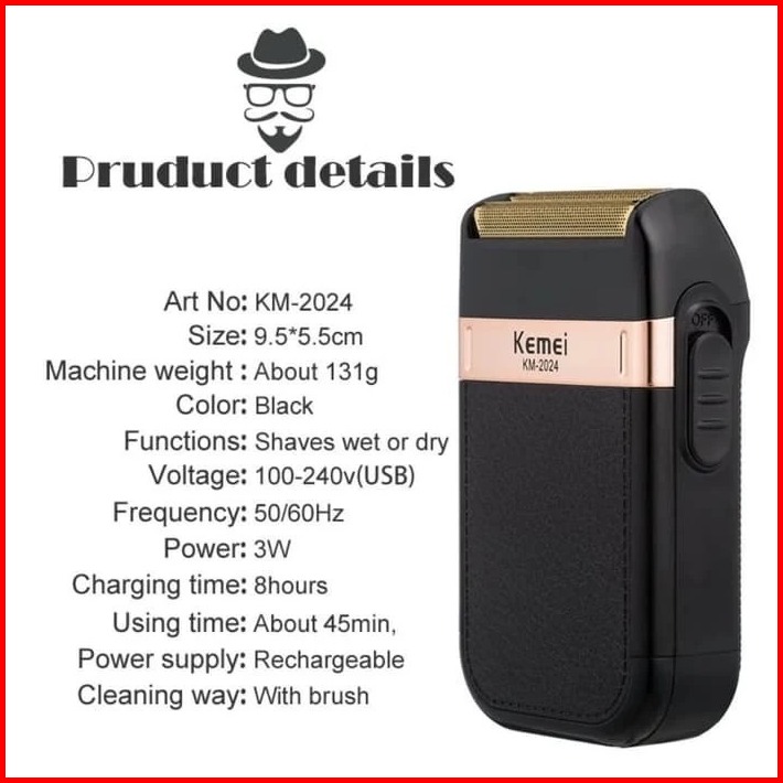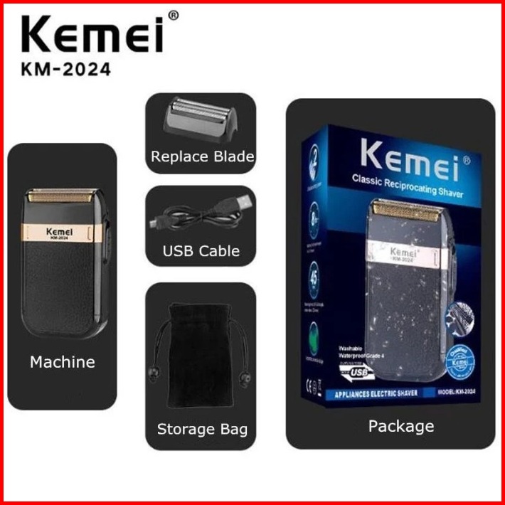 Kemei Km-2024 Usb Wet And Dry Shaver Trimmer Alat Cukur Jenggot Kumis