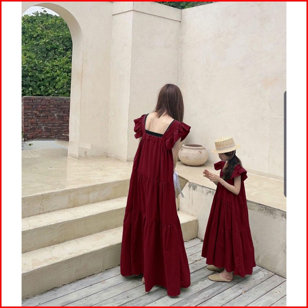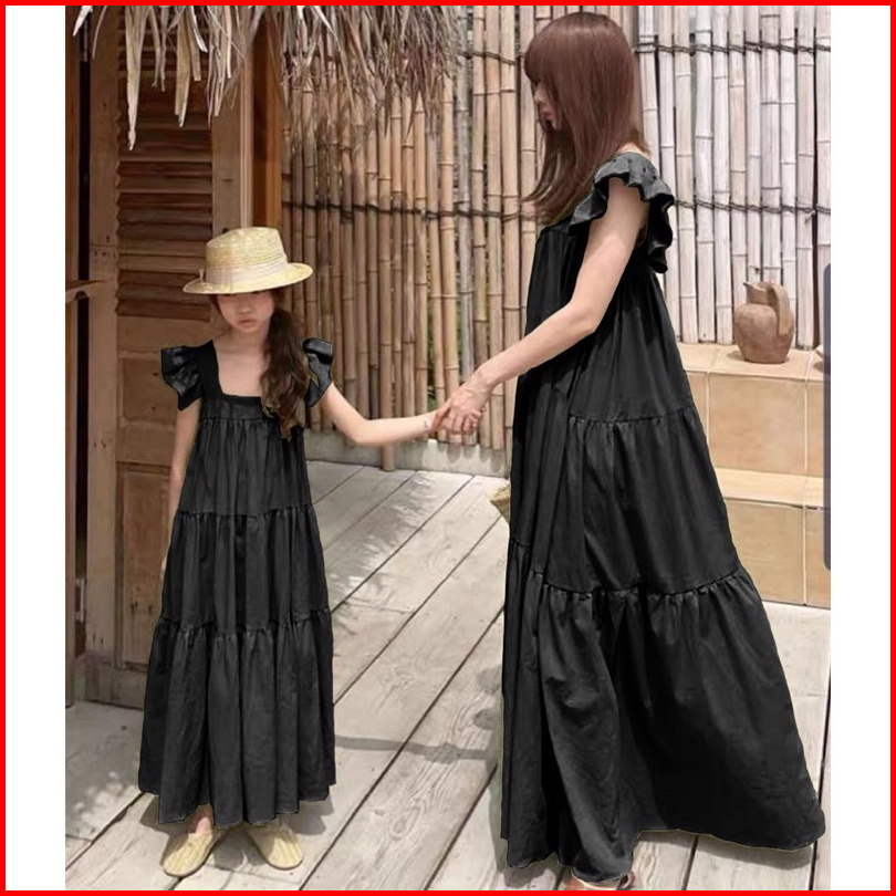 Tifkly - Dress Rumbai Mom Kids Baju Anak Perempuan 6-10 Tahun Baju Wanita Pantai Dress Couple Mom Kid
