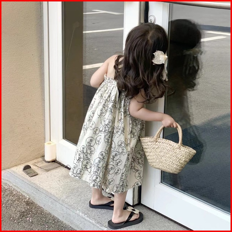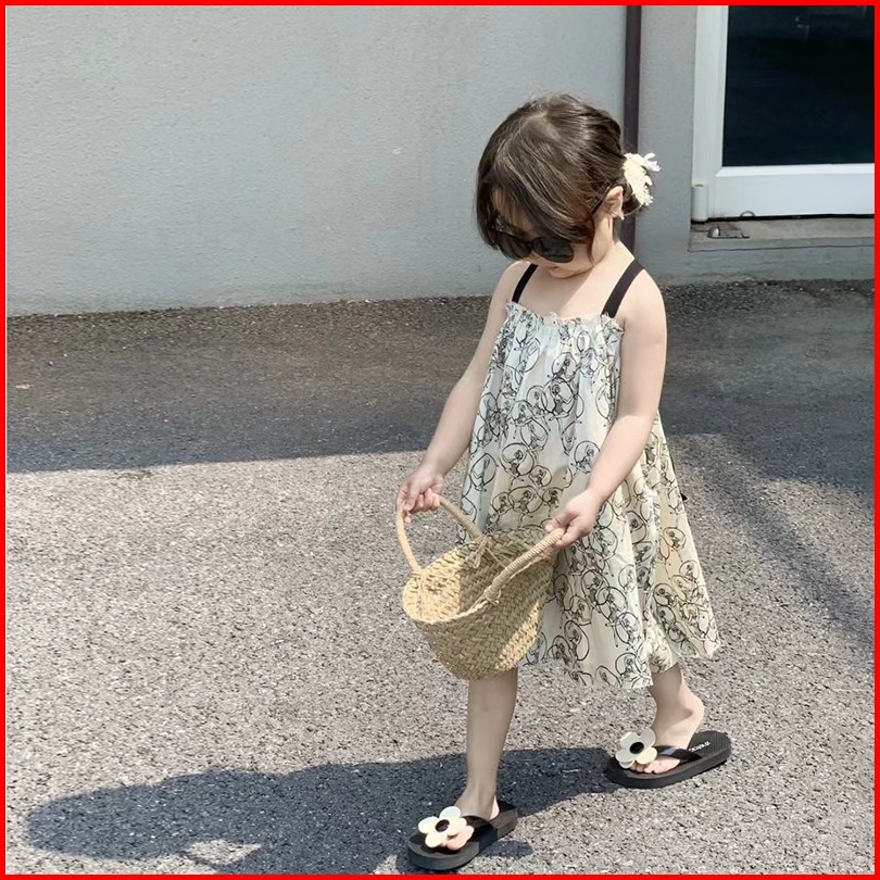 Haasya Kids 2-7 Tahun Pakaian Anak-anak Usia Gaun Tali Anak Perempuan Rok Pantai Liburan Longgar Atasan Tabung Anak-anak