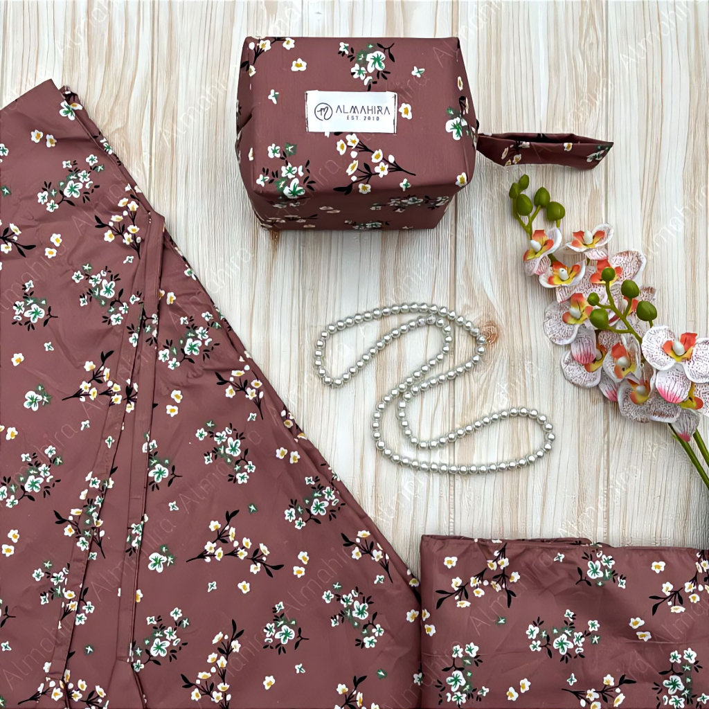 Mukena FLORA Series Laser Cut | Mukena Travelling Pouch Motif | Mukena 2in1 Motif Resleting Dagu by Almahira