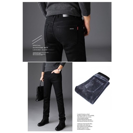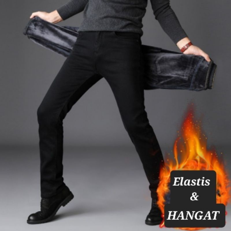 Celana Jeans Hitam Pria Musim Dingin Celana Thermal Hitam Celana Winter Pria
