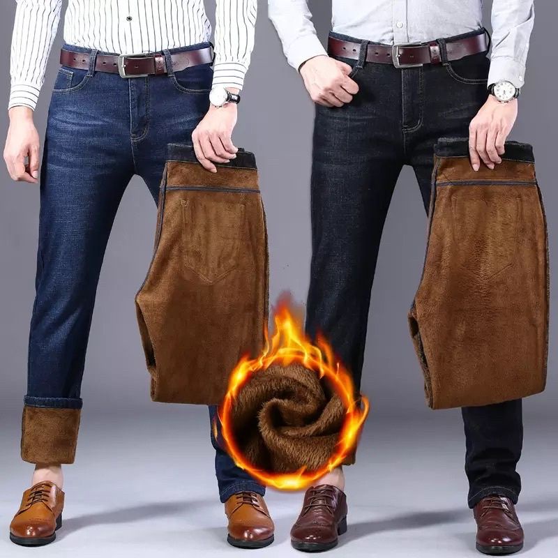 Celana Jeans Pria Musim Dingin Thermal Celana Long john Jeans Winter Thermal celana musim dingin pria hangat salju 01
