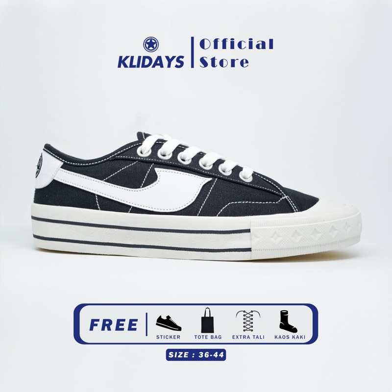 Klidays - Sepatu Pria Wanita Unisex Republic Black White Sneakers Casual Original Sepatu Sekolah Terlaris