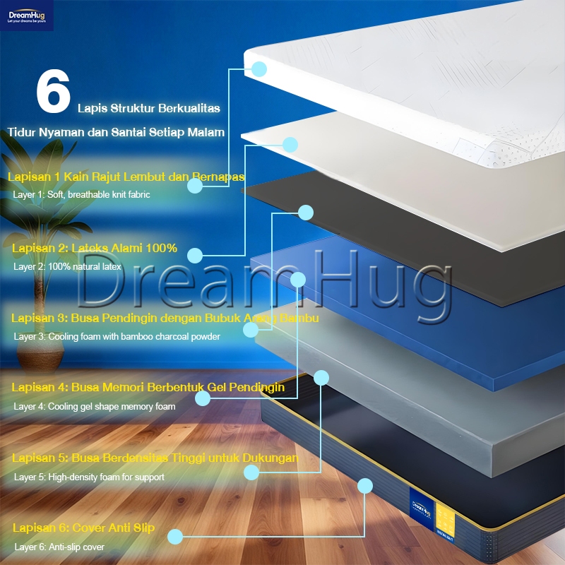 DreamHug Kasur Busa Memori Setebal 20CM Kasur Lateks Dengan Busa Memori Gel Pendingin Kualitas Hotel