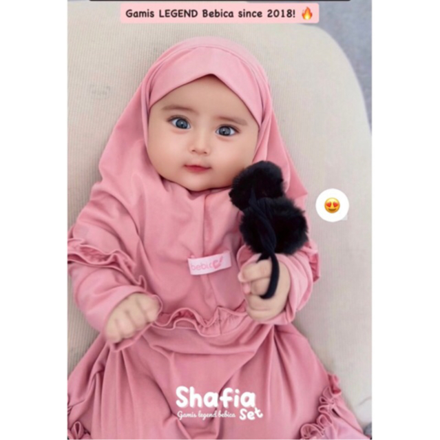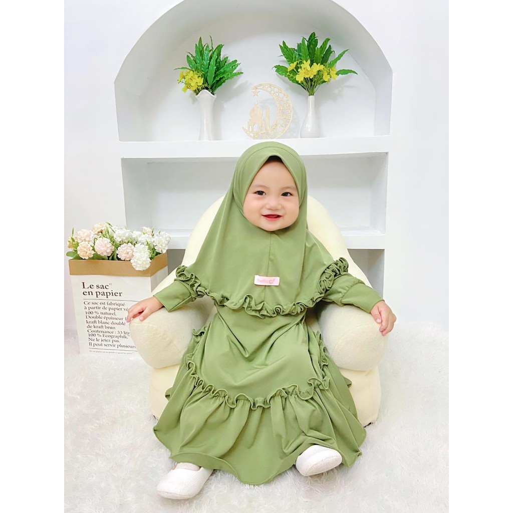 Bebica Shafia Set Gamis Hijab Anak Perempuan (0-9 Tahun) | Setelan Muslim Bayi Jersey Premium Polos